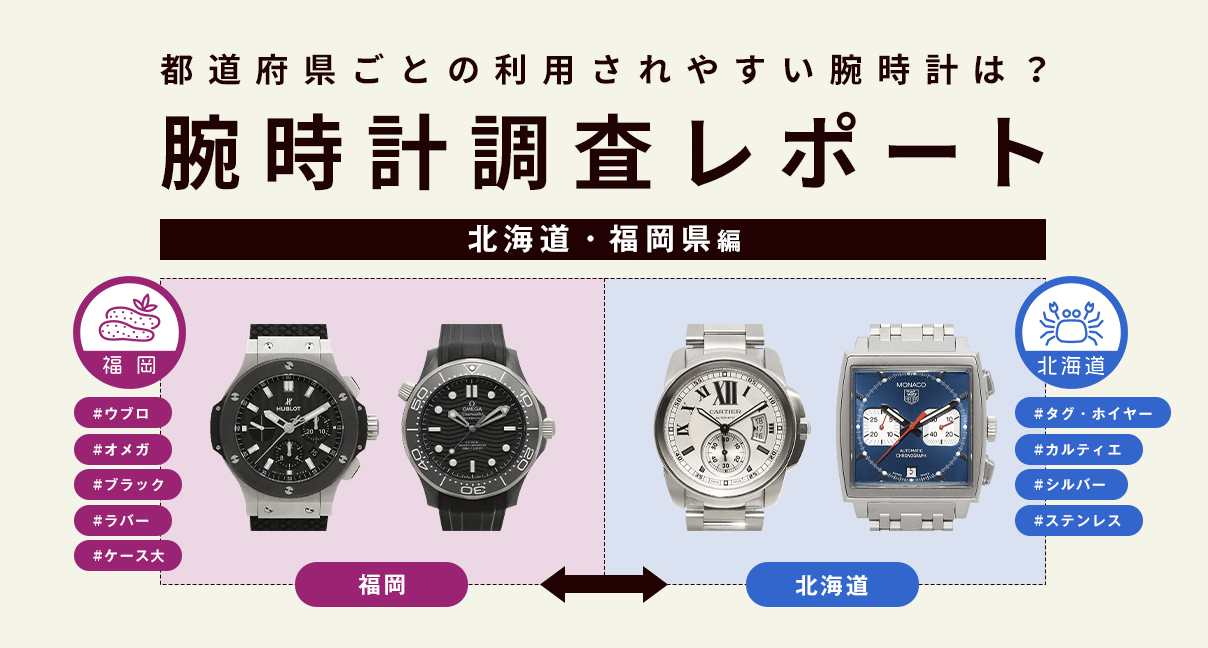【北海道vs福岡県】利用されやすい腕時計は?北海道はタグ・ホイヤー、福岡はウブロの時計が断然人気