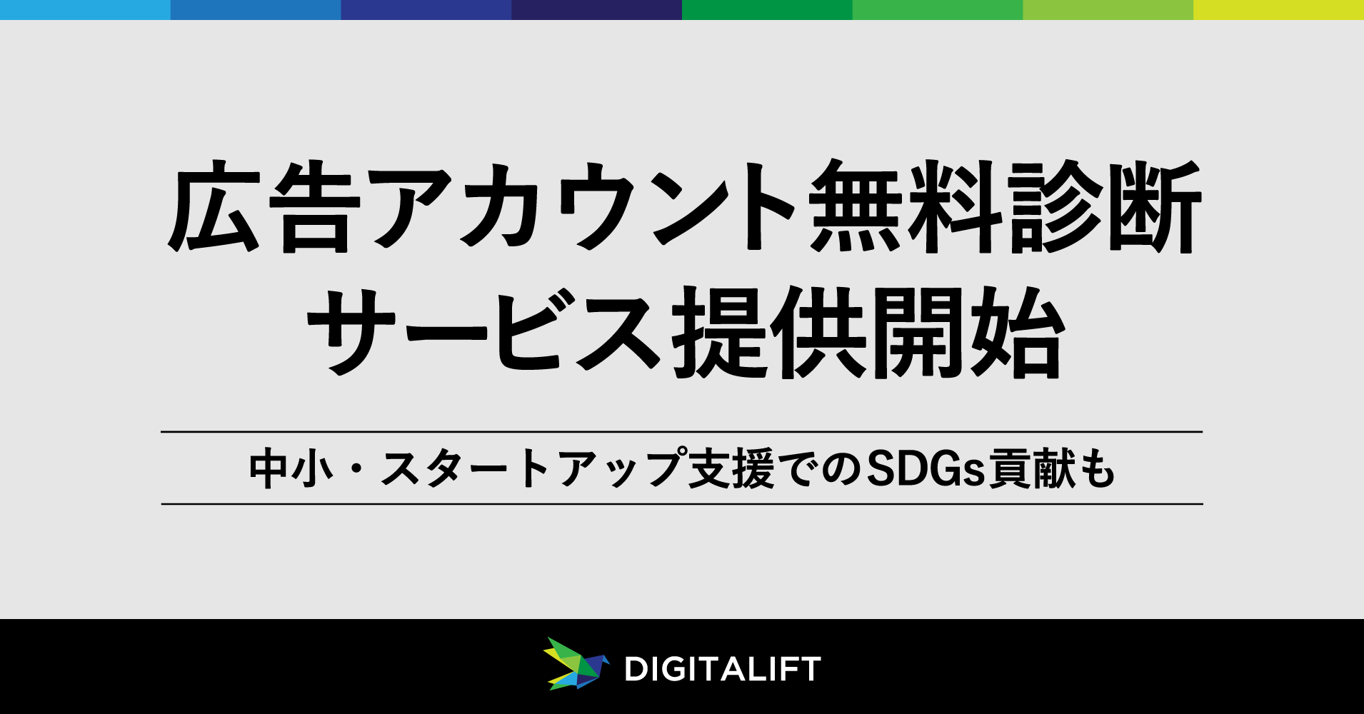 また、デジタリフトではSDGsに積極的に取り組んでおり、「高水準のデジタルマーケティングテクノロジーを誰にでも」という理想を掲げ、これまでにも低予算向けの広告運用プランの提供をはじめとする、中小企業・スタートアップ支援を行ってきました。今回の「広告アカウント無料診断サービス」についても、事業立ち上げ期など大きな予算がかけられない時期にも、診断結果の活用で少しでも事業成長に貢献できたらとの思いもあります。