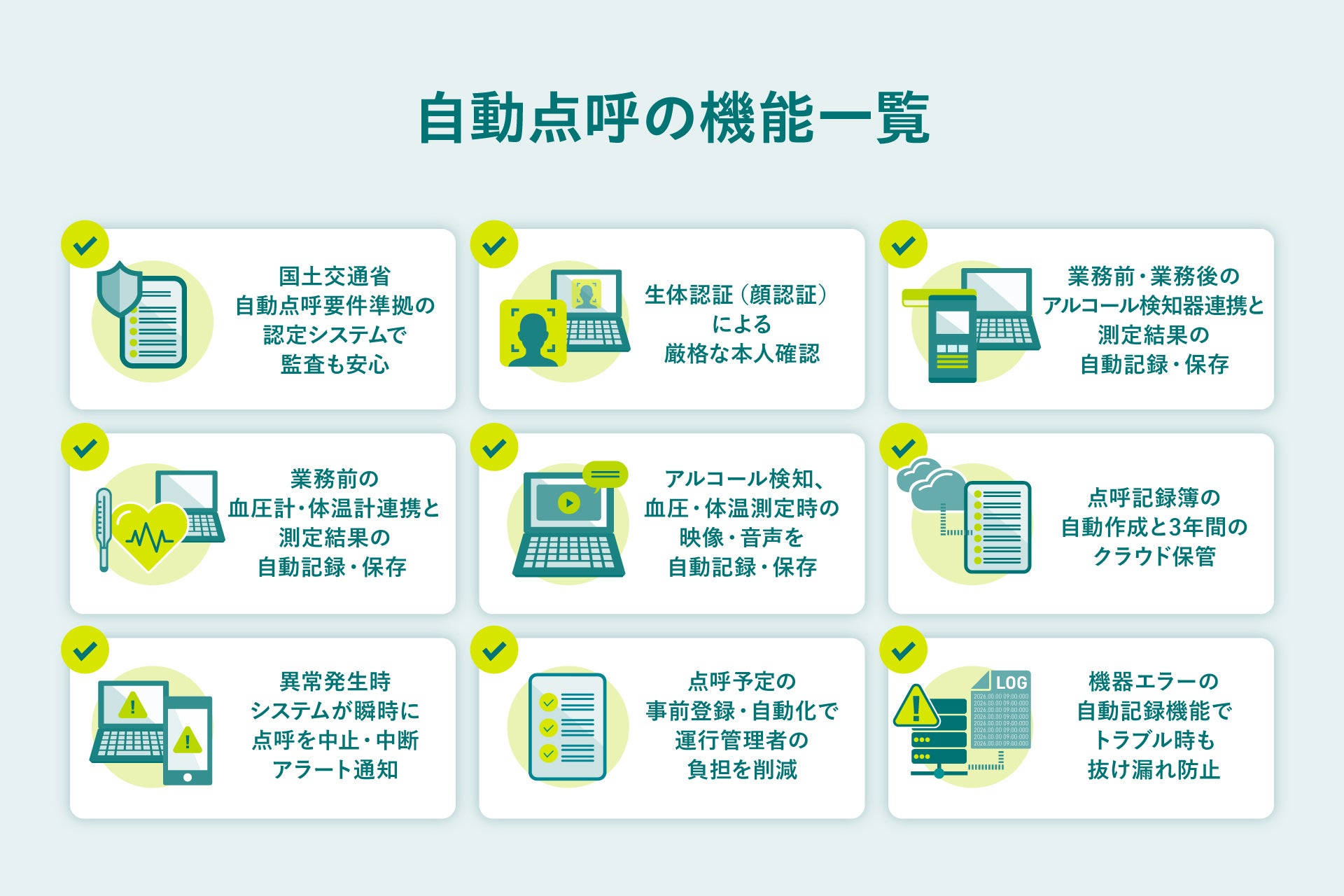 業務効率化・人的負担軽減・虚偽報告防止など、安心安全な運行管理を実現します。