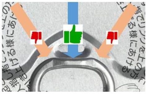→タブが凹形状をしていることから、タブの中心に自然と指が誘導されます。これにより、斜め方向からの指掛けを防止し、開口ミスの発生を抑制します。