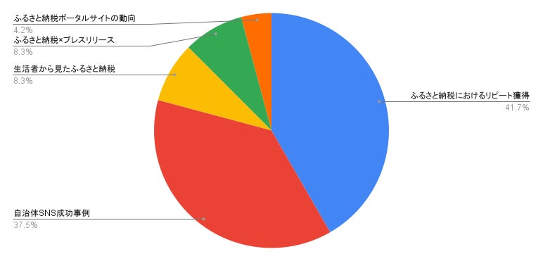 今回のセミナーの内容で、もっとも満足度が高かったのは「ふるさと納税のリピート獲得」「自治体のSNS成功事例」となりました。先述の課題に対し、解決できる具体的な方法を求める声が高まっています。