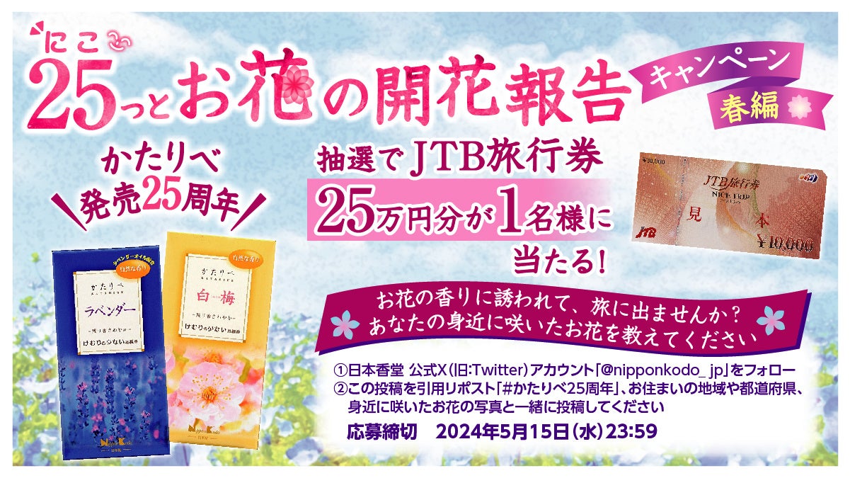 【#かたりべ発売25周年】日本香堂「25(にこ)っとお花の開花報告キャンペーン 春編」を4月1日よりX(旧Twitter)で開始!