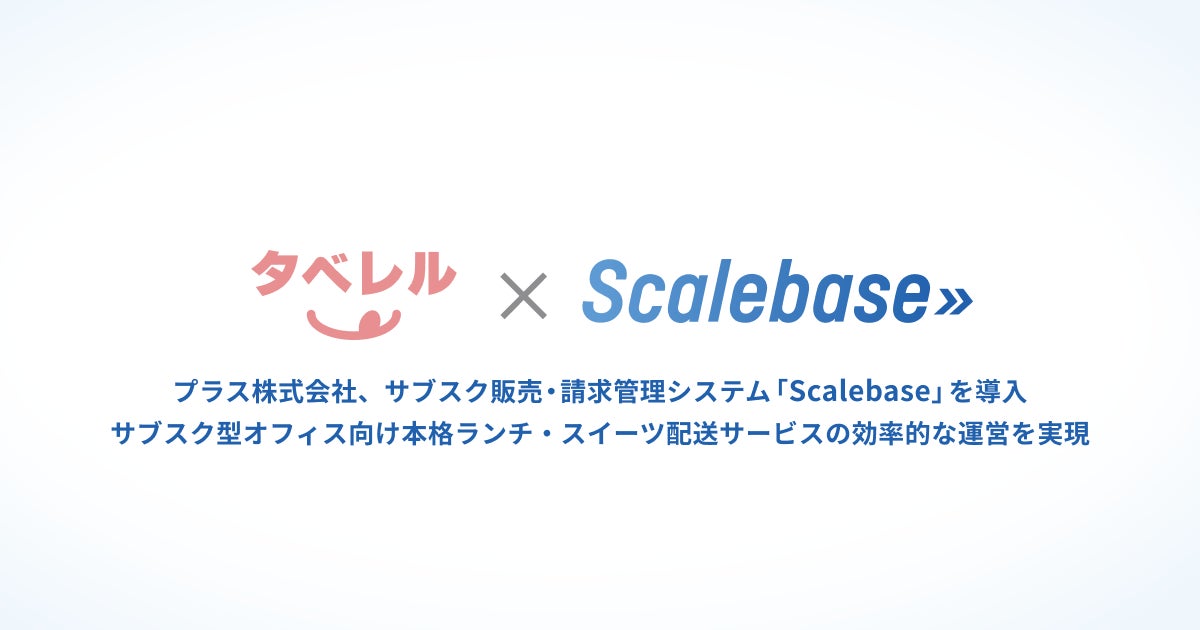 アルプ株式会社(本社:東京都港区、代表取締役CEO:伊藤 浩樹、以下アルプ)が運営する販売・請求管理システム「Scalebase」(スケールベース)が、文具・事務用品、オフィス家具メーカーのプラス株式会社(本社:東京都港区、代表取締役社長:今泉忠久、以下プラス)が展開する新規事業のオフィス向けフローズンフード定額配送サービス「タベレル」に、導入されたことをお知らせします。