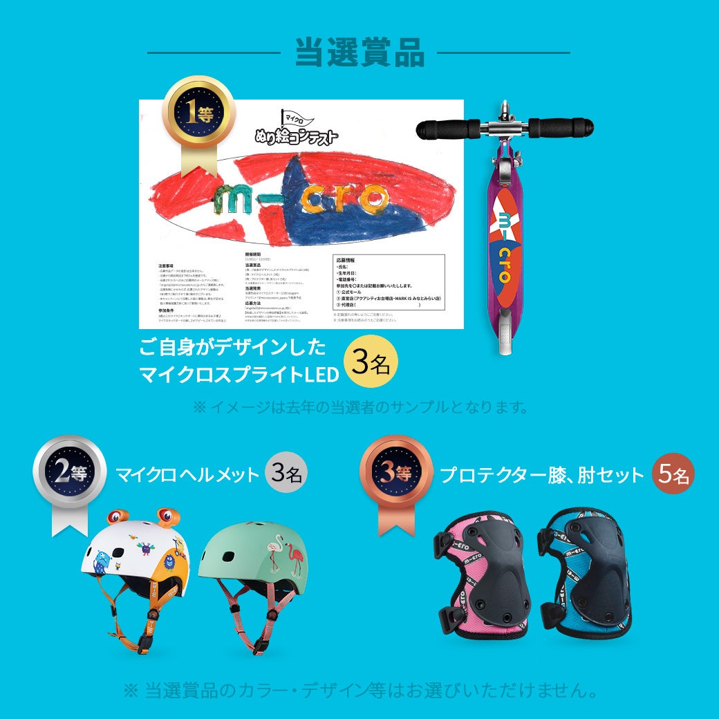 1等受賞者(3名様)には自分の絵が描かれたキックボードをプレゼント