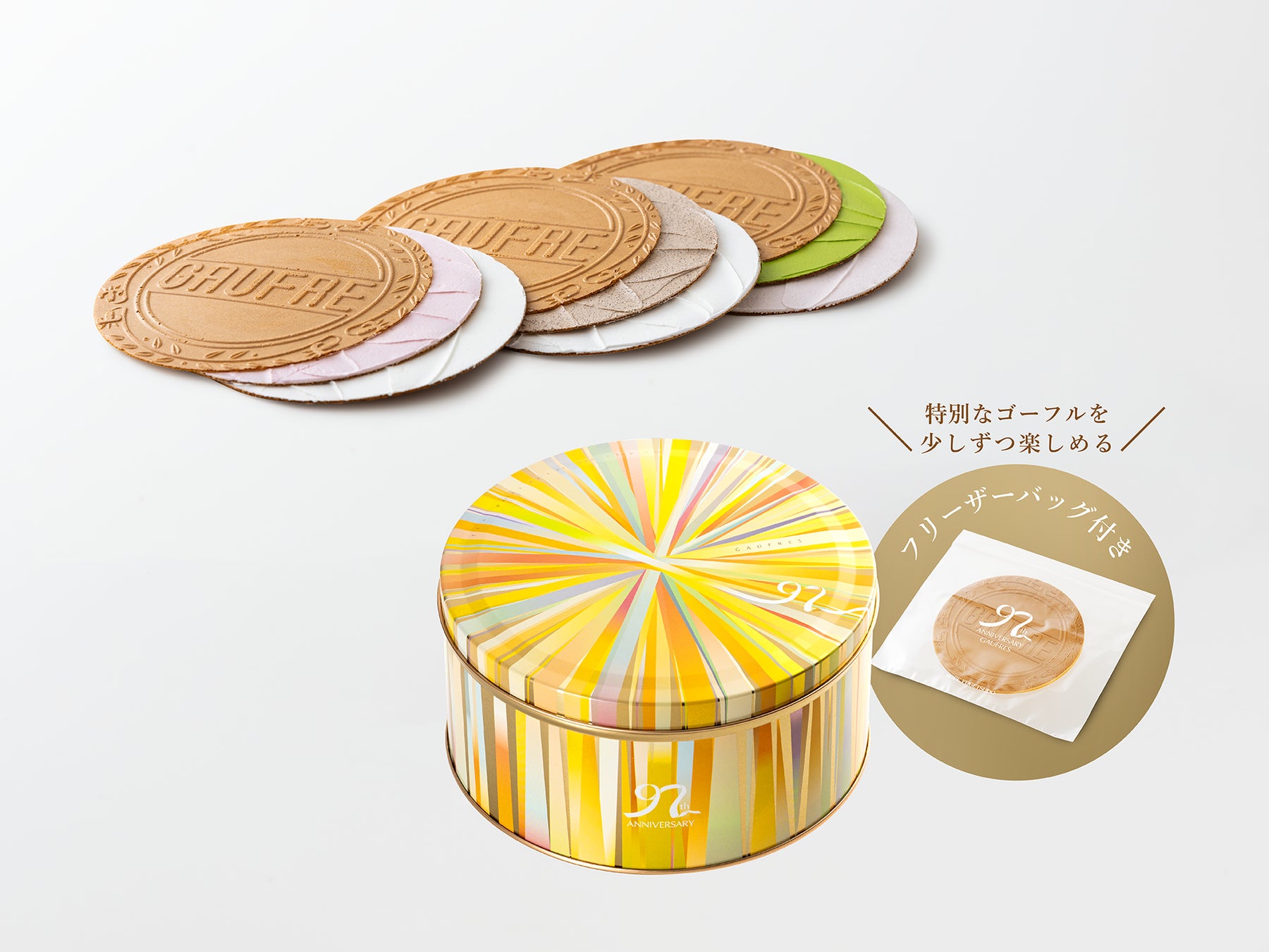 オリジナルデザイン缶の中には、97周年アニバーサリー企画のために開発された特別なゴーフルをアソートしました。
