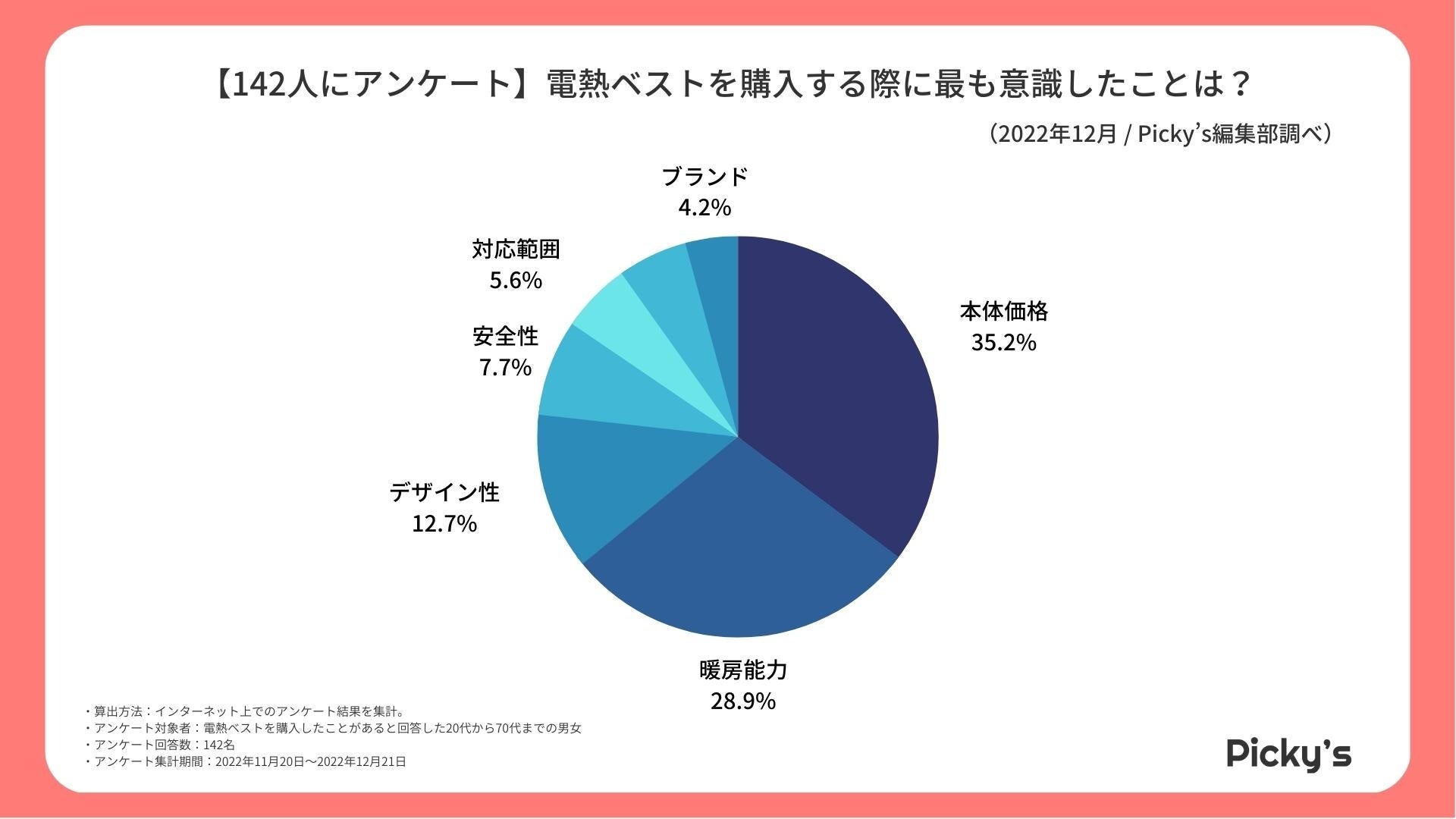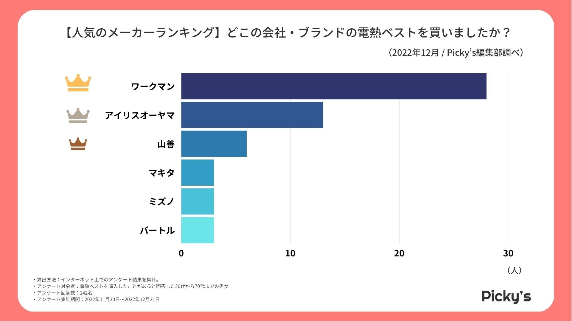 このたびPicky’s(https://rentry.jp/note/)では、電熱ベストを買う際に意識していることや人気のメーカー・ブランドなどをインターネット上でアンケート調査を行い、ランキングを作成いたしましたので発表いたします。