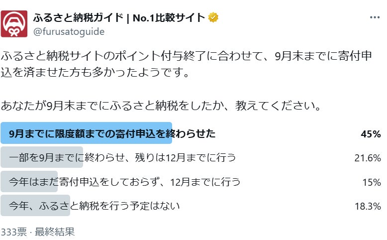 調査方法:「ふるさと納税ガイド」X公式アカウント @furusatoguide のアンケート