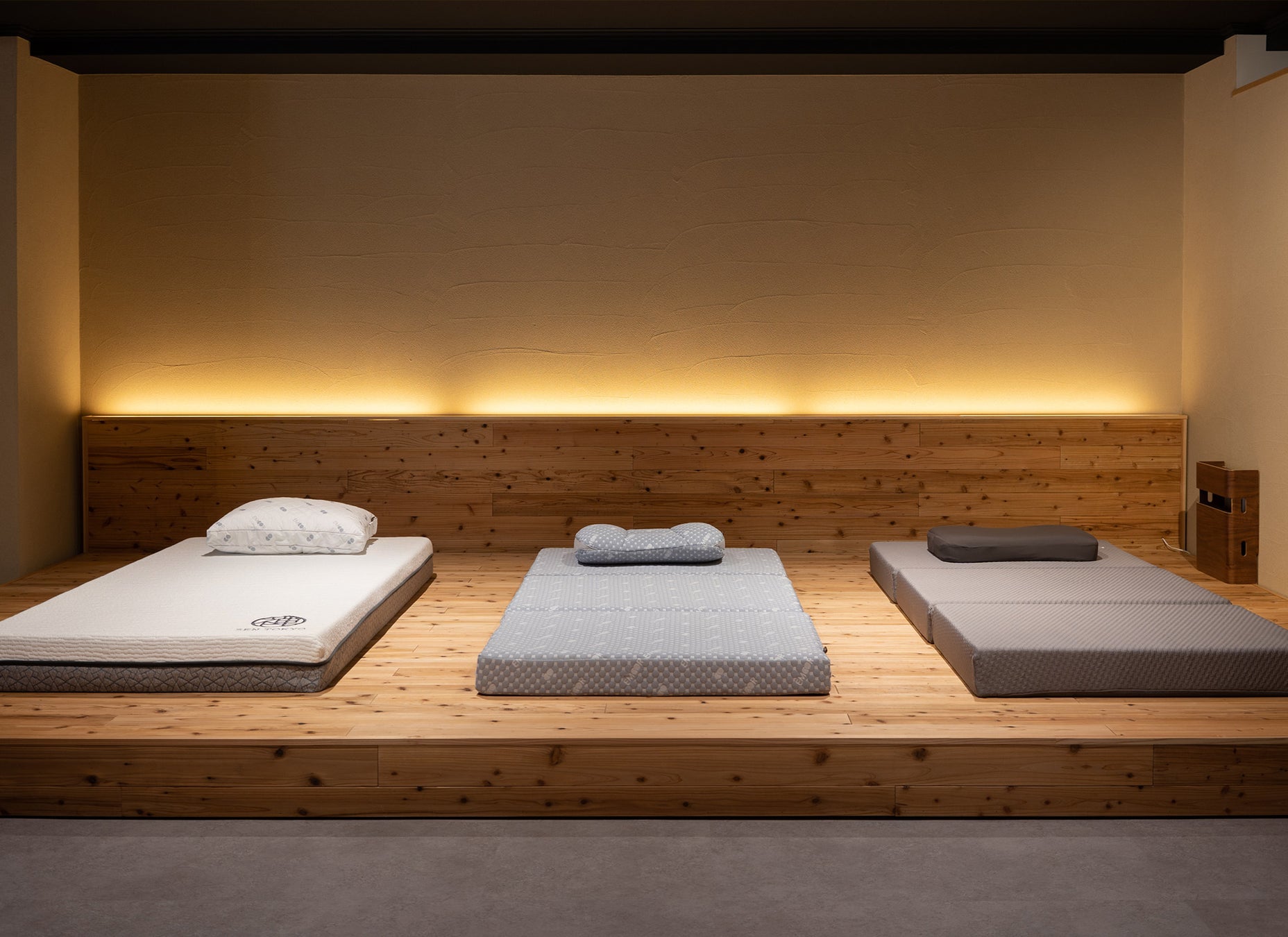 マットレスやベッド、高座椅子・リクライニングチェア等の商品を実際に体験してから購入したい方向けの体験空間です。予約制で最大1時間、専門スタッフがお客様の心地よい体験をサポートいたします。立川のショールームでの経験を活かし、お客様のお身体に合った商品をご提案いたします。