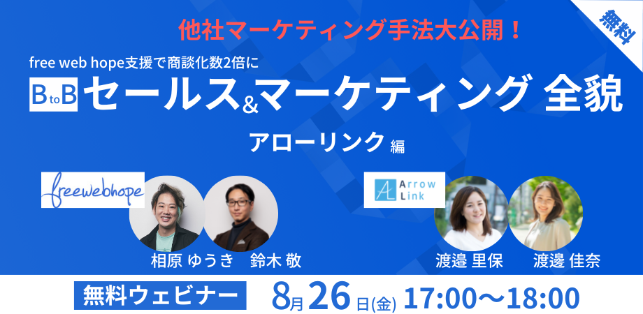 無料セミナー「他社マーケティング手法大公開 freeweb hope支援のセールス&マーケティング 全貌」8月26日(金)開催
