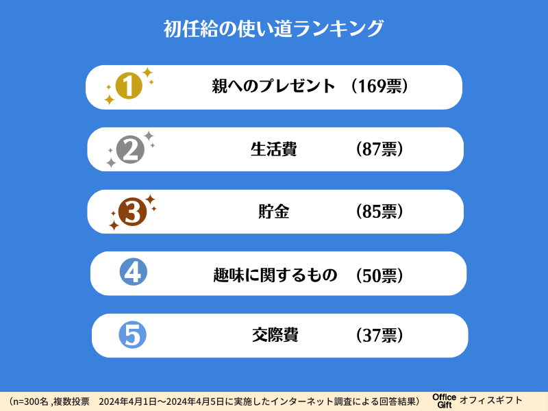 みなさんがどのように初任給を使い、そこにはどのような理由や思いがあったのか、ランキング形式で詳しく発表するので、ぜひご覧ください。