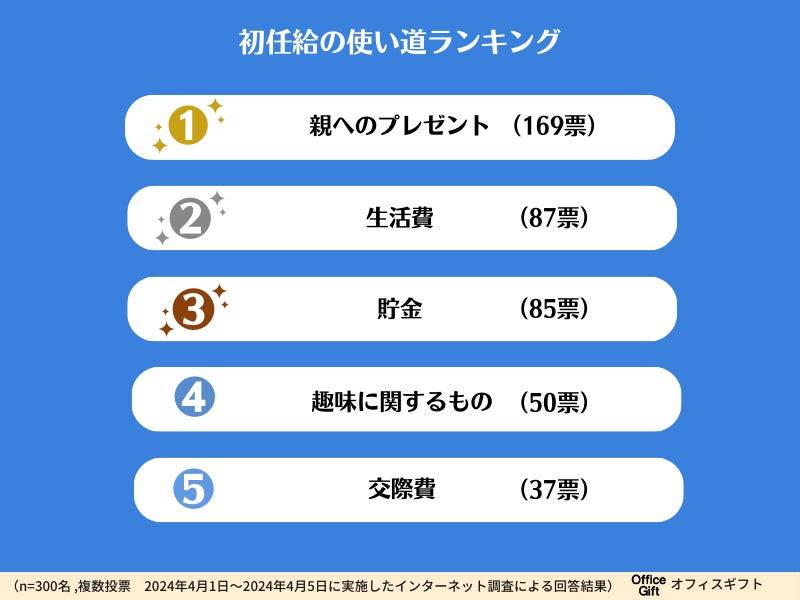 【初任給】が引き上げ傾向!?気になる使い道を300名にアンケート調査!恩返し?貯金?使わない??ランキング形式で発表★