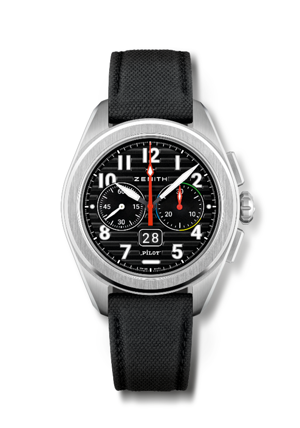 ゼニスのパイロット コレクションは、クロノグラフのリファレンスなしには完成しません。この最新モデルでは、キャリバー、エル・プリメロ 3600に、パイロットのために考案された数々の新機能を搭載した新バージョンが開発され、さらに進化を遂げています。