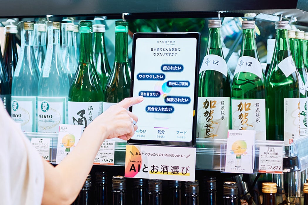 【購買体験のDX 】日本酒をAI と選ぶ小売店向けサイネージ「KAORIUM for Sake」ジェイアール名古屋タカシマヤ地下2 階和洋酒売場で期間限定設置