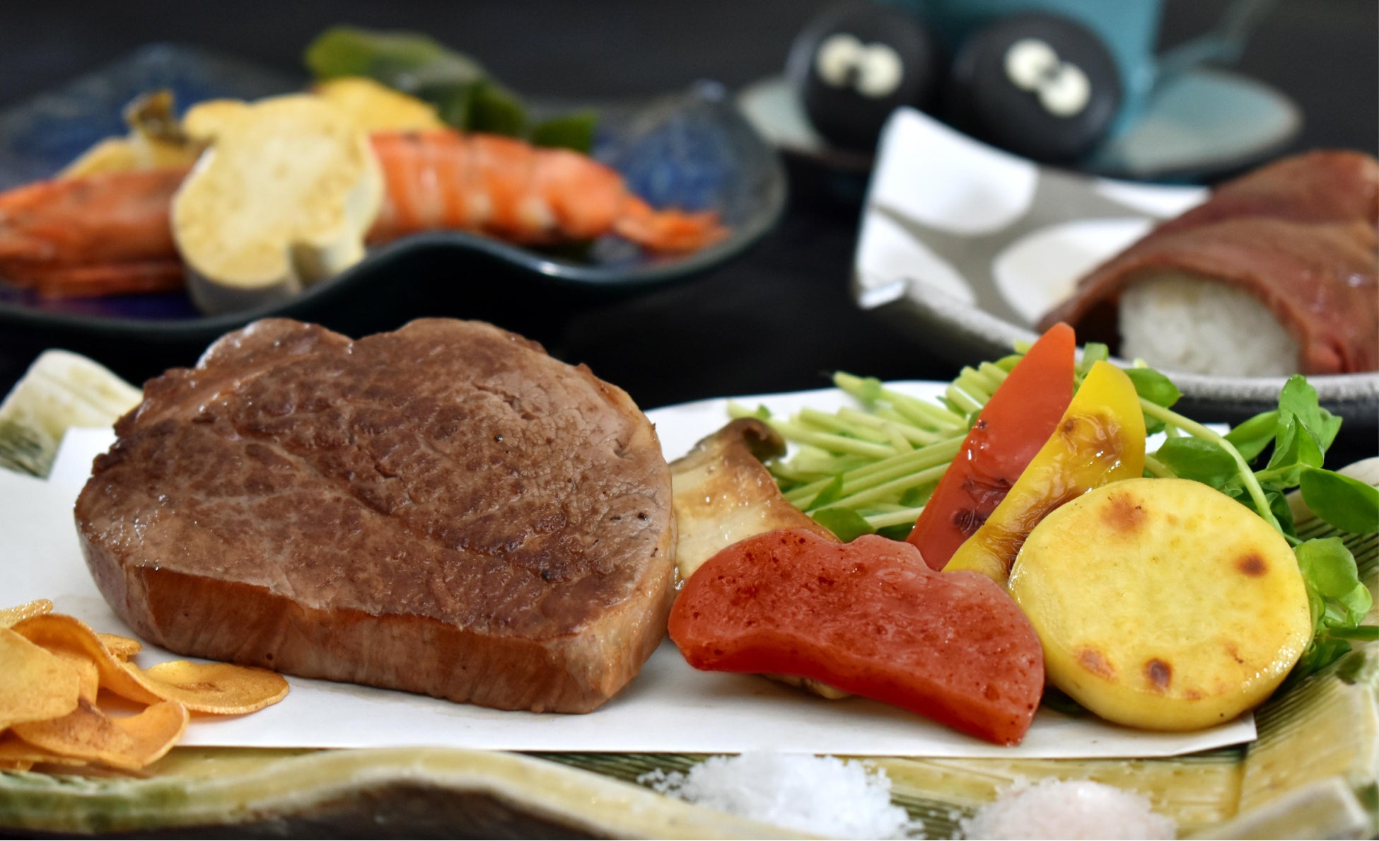 ライブ感あふれるシェフズキッチンにて、焼きたてステーキ(金土日祝限定)