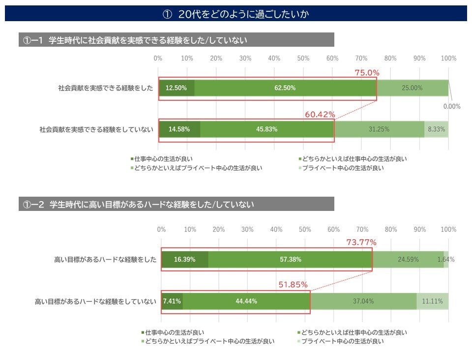 このような背景から、20代における仕事に対する向き合い方への志向と学生時代の経験がどのように影響しているのかを調査しました。