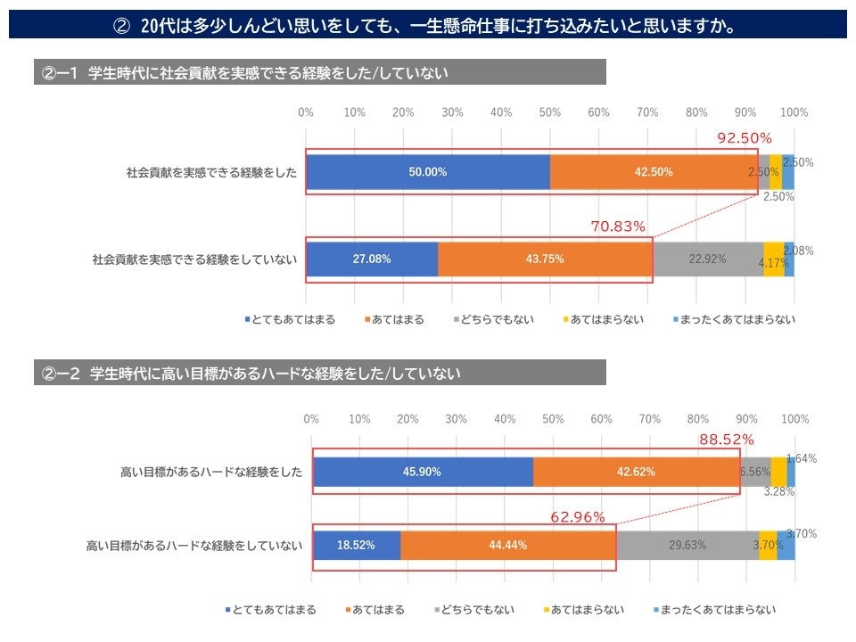 仕事に一生懸命取り組みたいと回答した学生は、学生時代にどのような経験をしているのか【調査レポート】