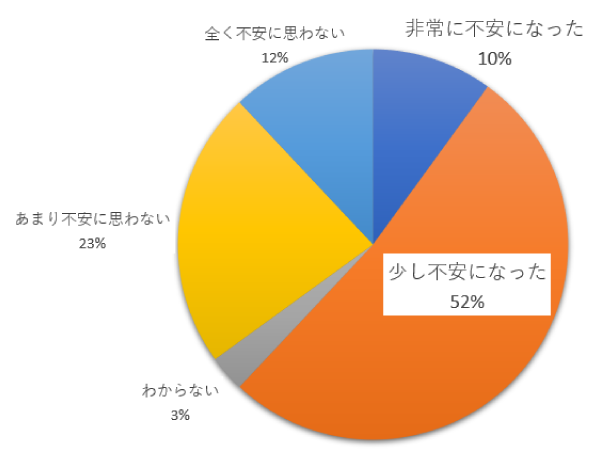 不安にならい方が合計35%に対し、不安になった方が合計で62%存在し、大きな差になりました。まだまだ朝の喉の調子でコロナへの不安が起きる結果になりました。