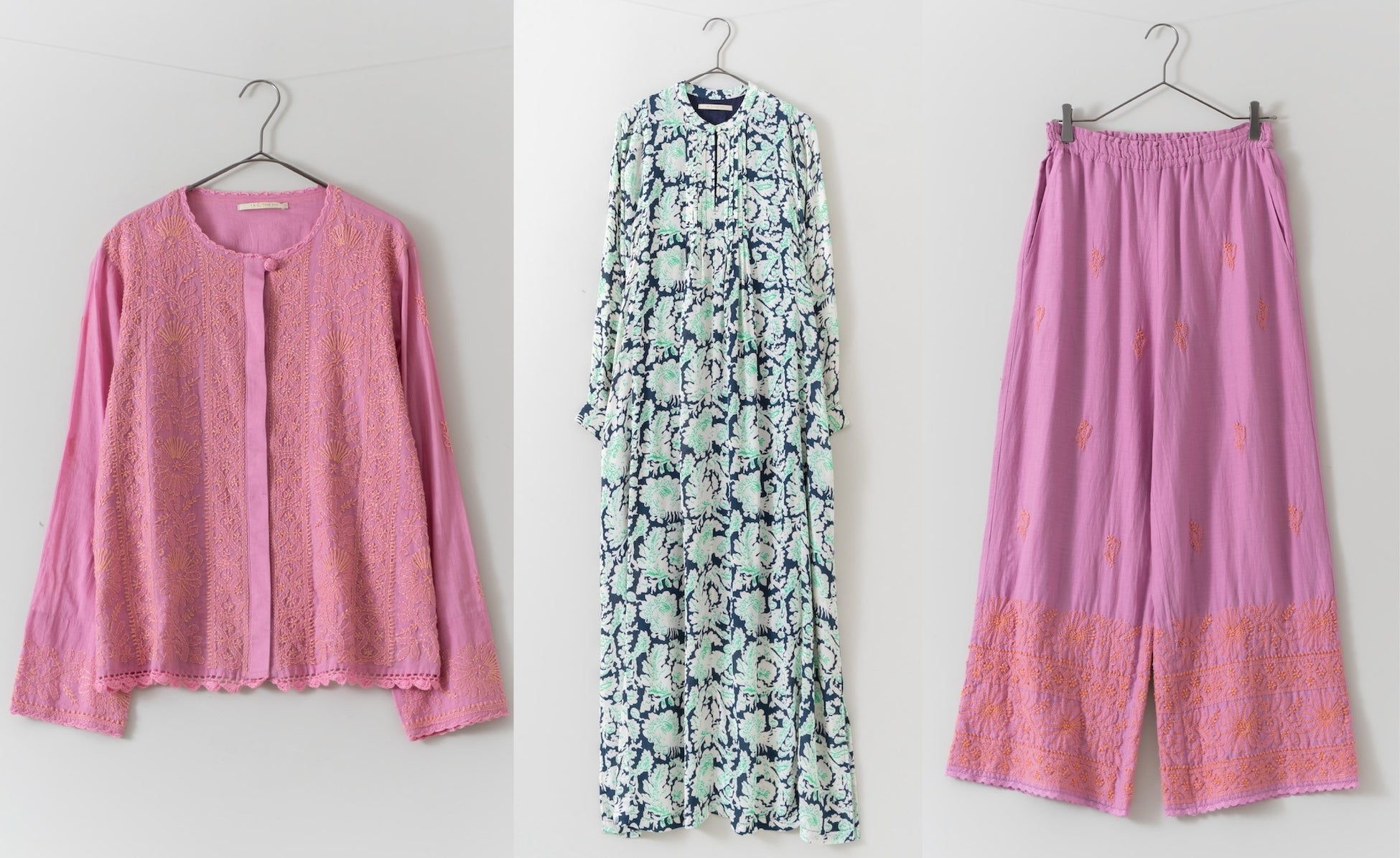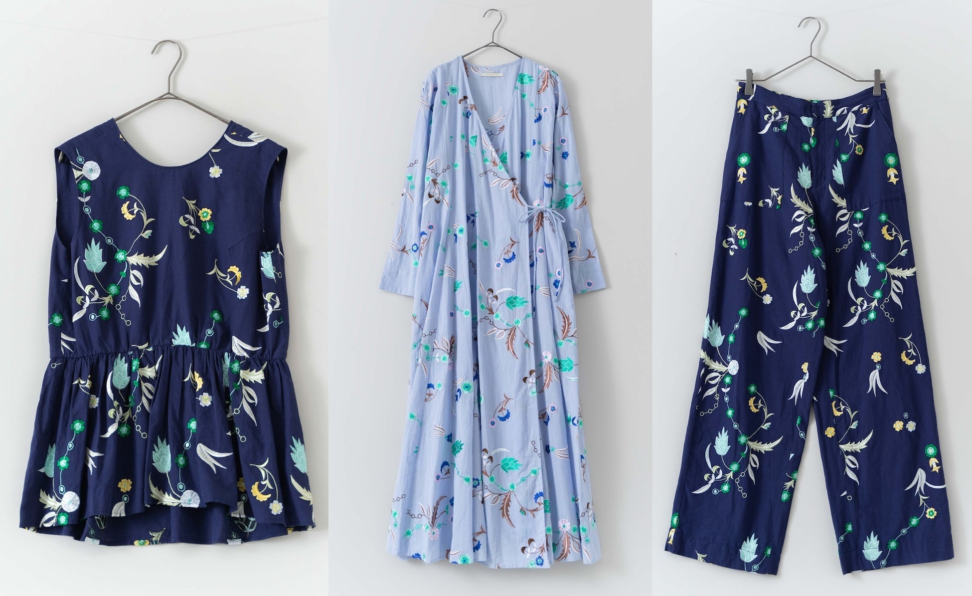 2024SS/シーズンテーマは【BOTANITY SCRAPBOOK】。インドの⼈々の暮らしに⽋かす事のできないお花を、スクラップするようにコレクションに散りばめました。