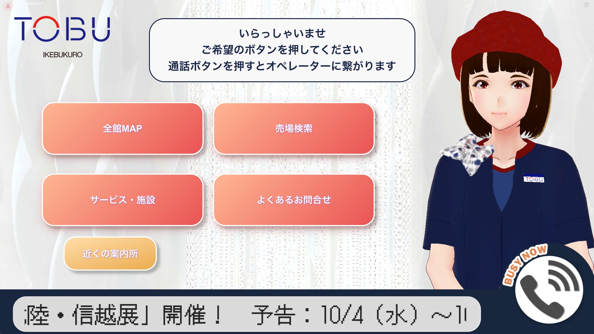 東武百貨店オリジナルアバターがご案内!自動応対と遠隔での有人応対のハイブリットタッチパネルが、東武百貨店 池袋本店に登場!