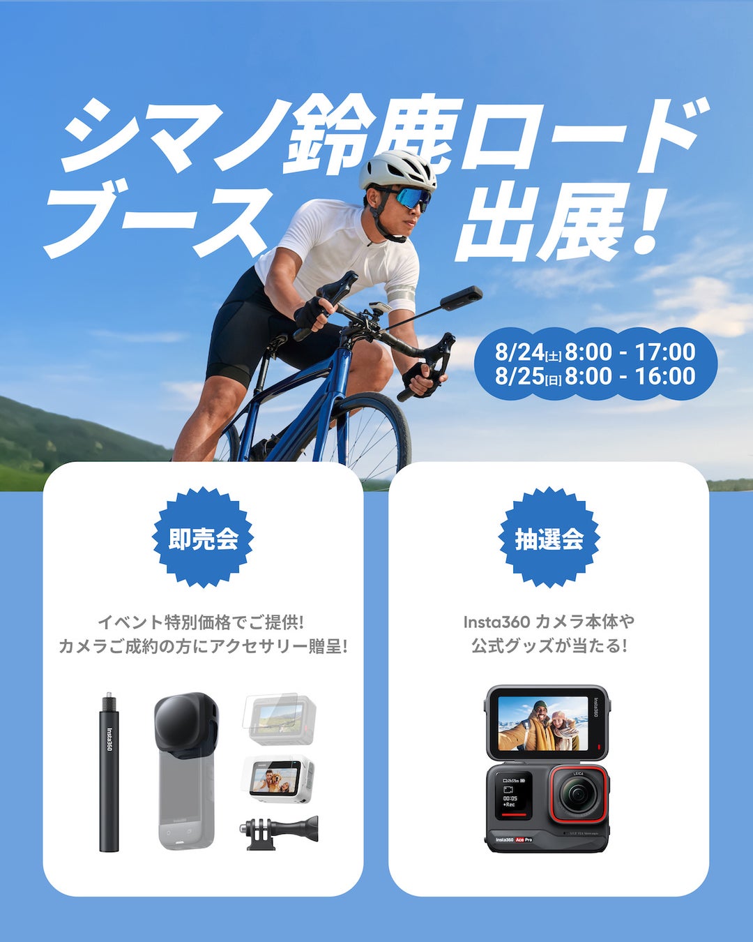 Insta360Japan(日本支社:東京都中央区、以下Insta360)が、2024年8月24日(土)、8月25日(日)に鈴鹿サーキットで開催される「シマノ鈴鹿ロード」にブース出展いたします。