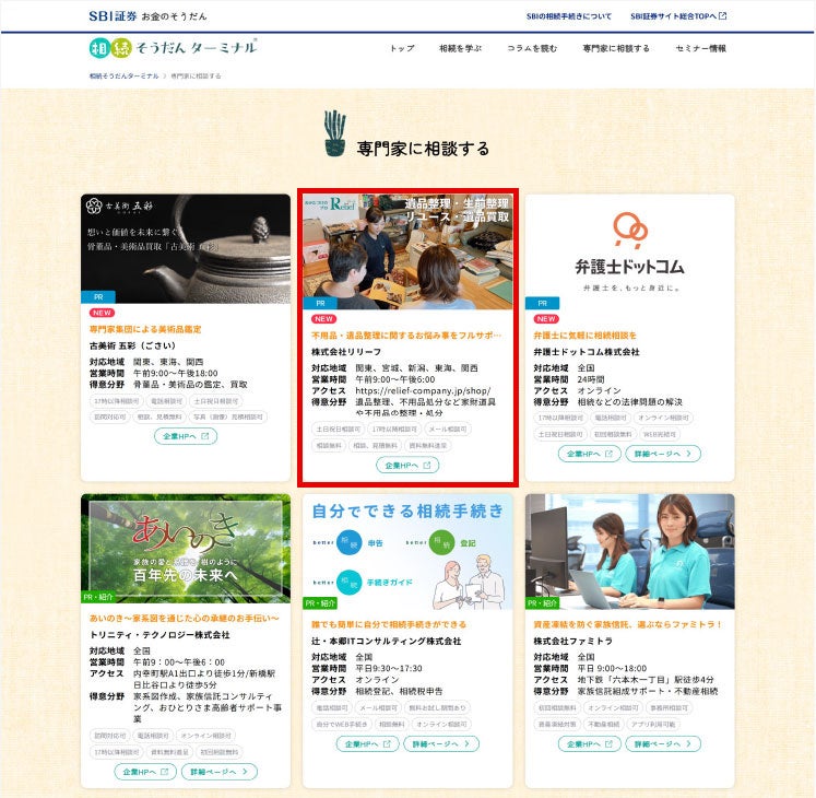 「おかたづけのプロ」リリーフ、SBI証券と業務提携を開始 ┃ 家財整理・買取からリユースまでのワンストップサービスを提供