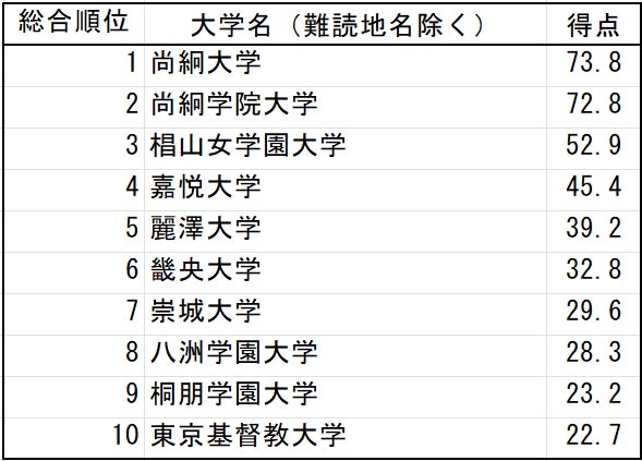 *2 大学名に含まれる地名の漢字が難しい場合は地名の難しさであり、大学名の難しさではないと考えて、地名の含まれる大学名は除いて総合ランキングを集計していますが、地名を含む大学名の調査も行なっているので、本資料の「補足情報」をご参照ください