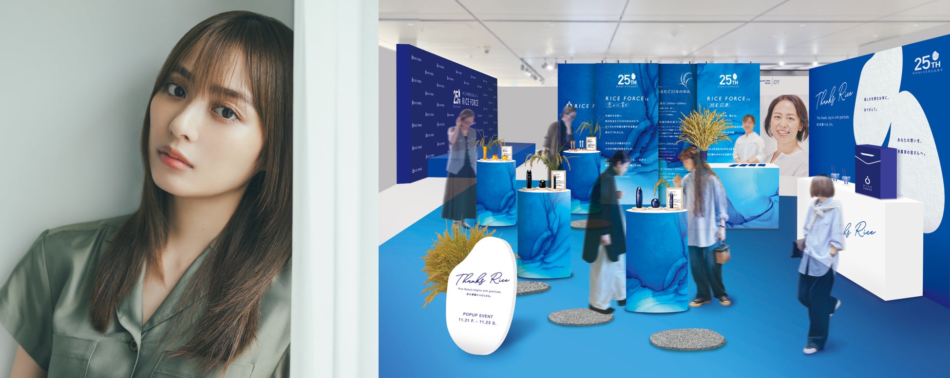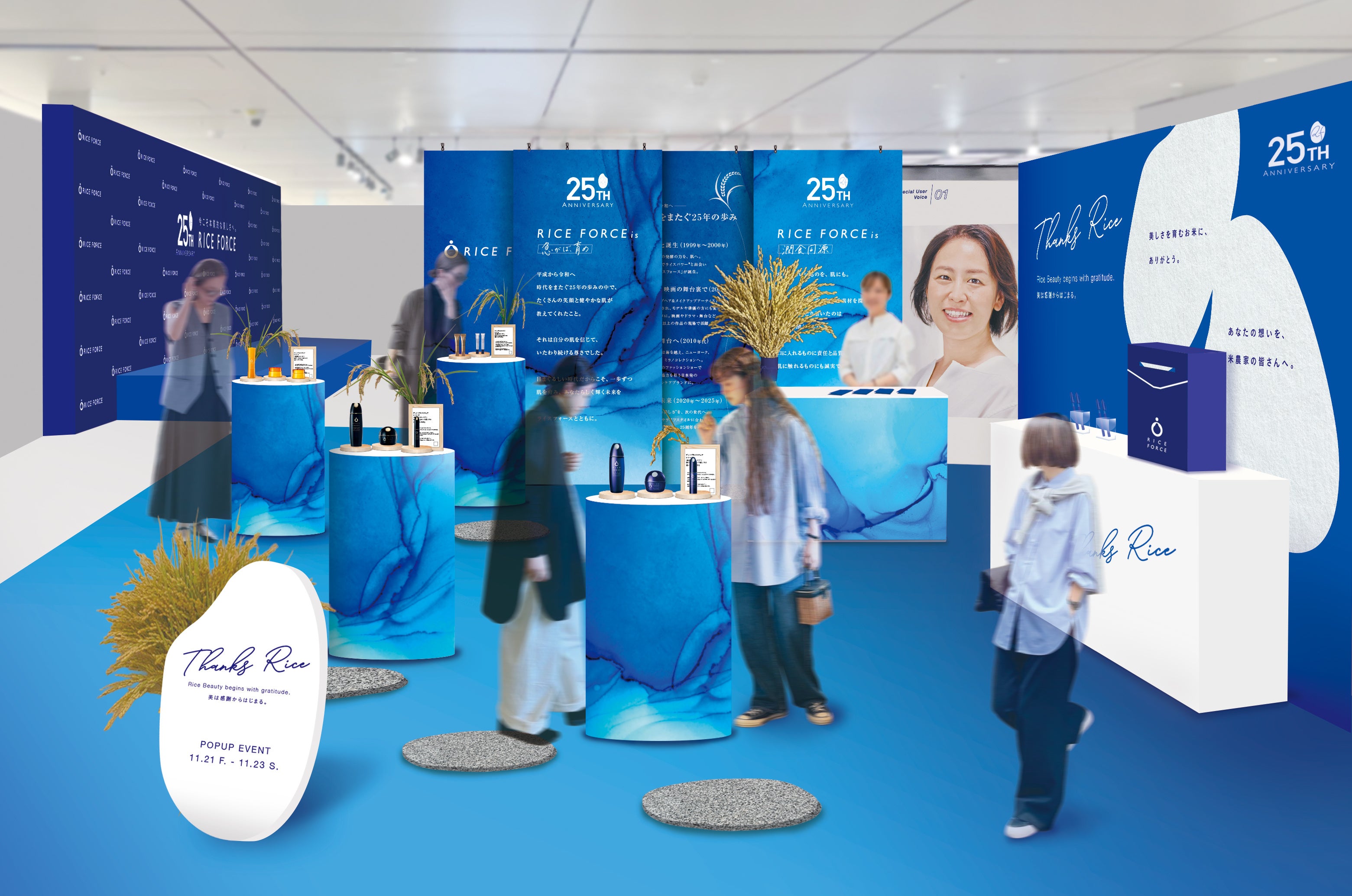 ライスフォースは2000年の誕生以来、25年間にわたり「米と発酵の力で肌を慈しむ」という理念のもと、米と発酵の力でつくられた「ライスパワー®エキス」を配合し、年齢や肌質を問わず、乾燥やさまざまな肌悩みからの解放を目指しています。25周年を迎える本年、ライスフォースは“お米を育てる人々への感謝”をテーマに、ブランドの歩みとブランドの原点でもある米を見つめ直すポップアップイベントを開催します。