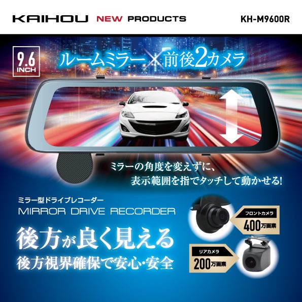 株式会社カイホウジャパン(東京都八王子市、代表取締役:小竹 海渡、以下 カイホウジャパン)は、大画面9.6インチミラー型ドライブレコーダー“KH-M9600R”を発売します。