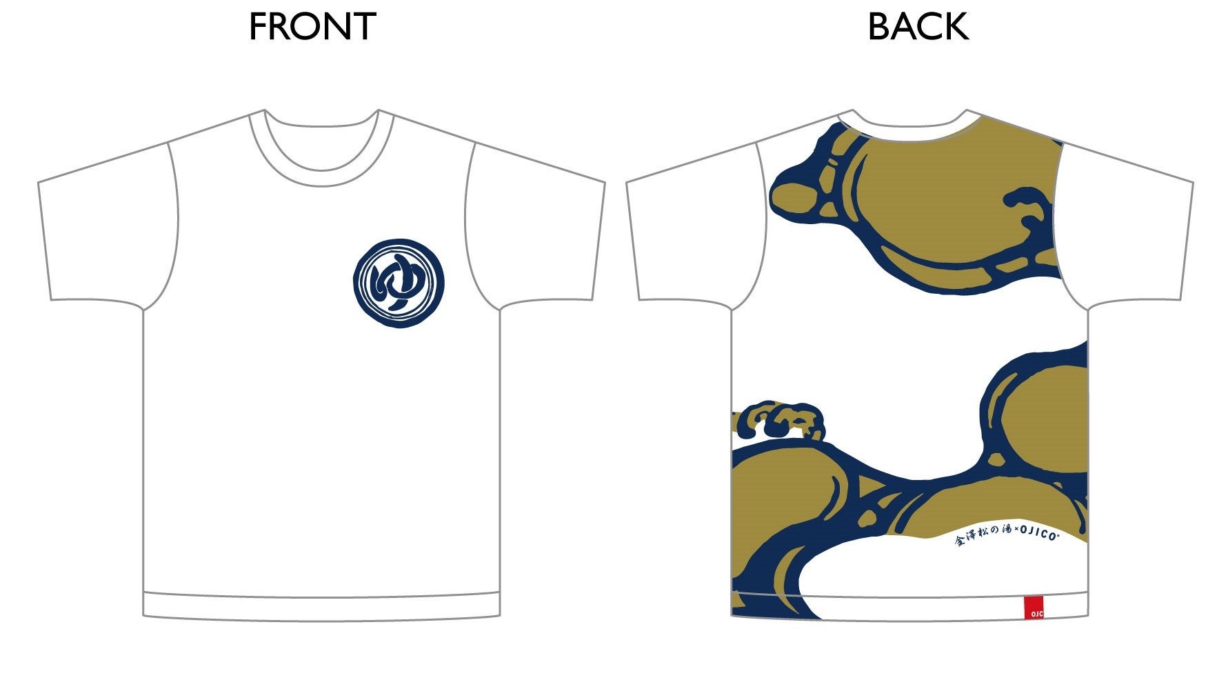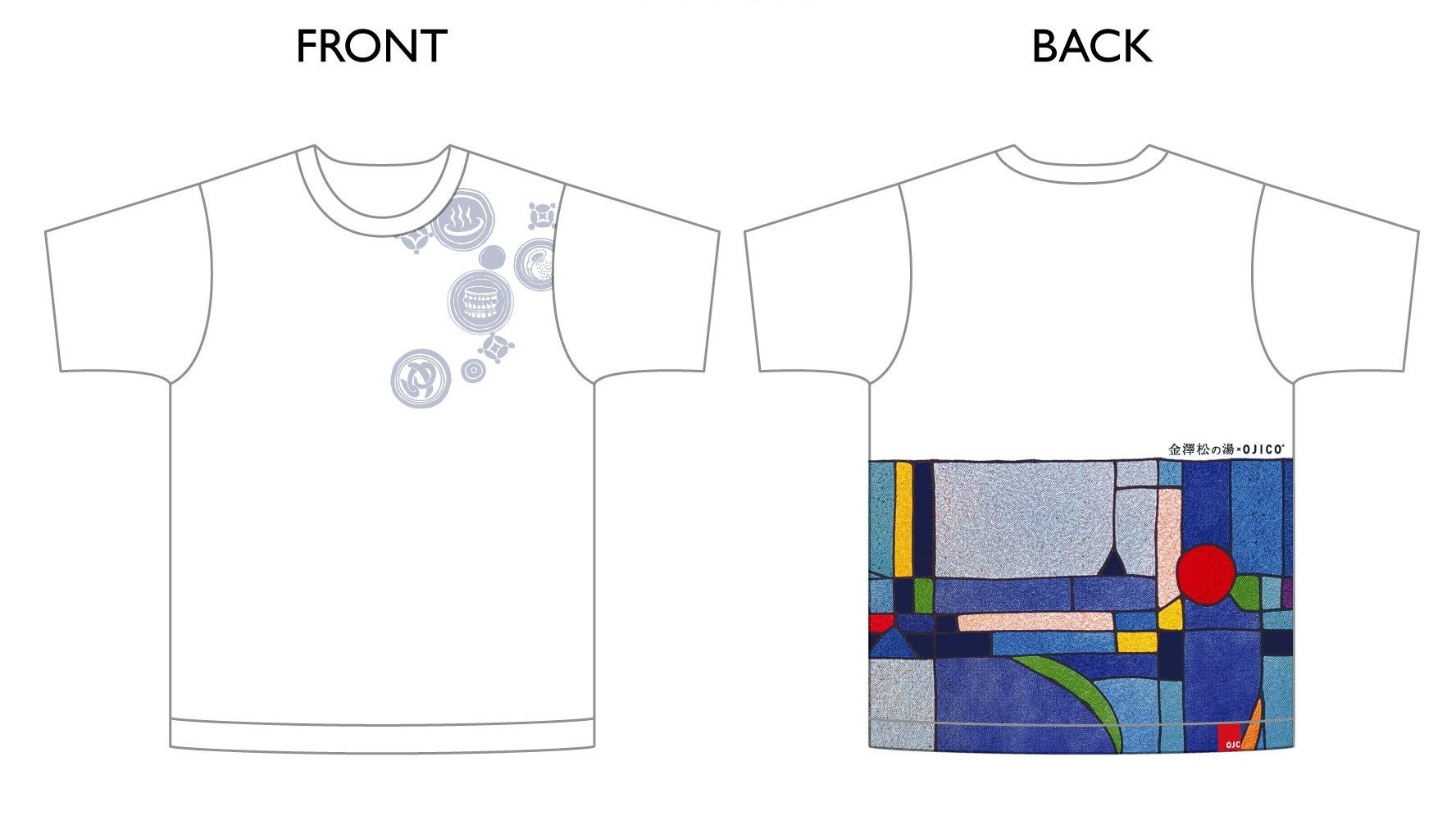 今回OJICOが手掛けたデザインは2種類。1つ目は「松の湯」内の装飾に施された、職人によるオリジナル九谷焼タイルの模様の一つを大胆に背中に配したデザイン。2つ目はこちらも「松の湯」内で印象的な、当時のままの姿を残すステンドグラスをモチーフにしたデザイン。どちらも「松の湯」のシンボルをモチーフにしつつ、わかる人にはわかるスタイリッシュで洗練されたデザインに仕上がりました。