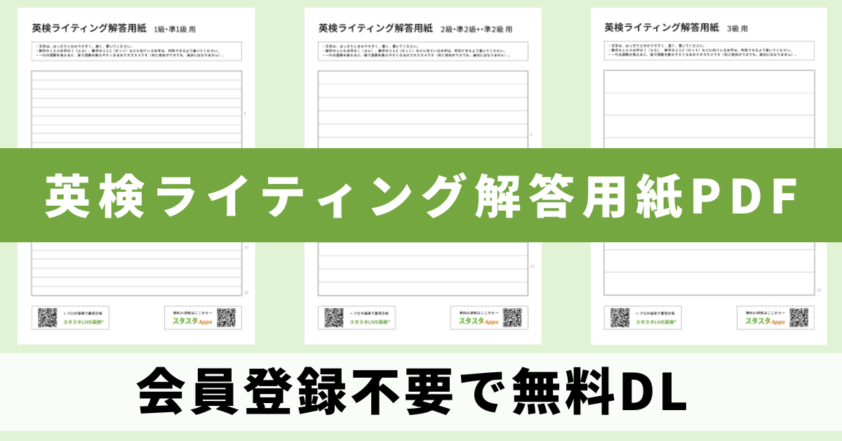英検®対策Webアプリ「スタスタApps」(運営:スタディスタジオ株式会社)は、英検®ライティングの添削をより使いやすくするため、ライティング解答用紙(A4・PDF)の無料ダウンロード提供を開始しました。