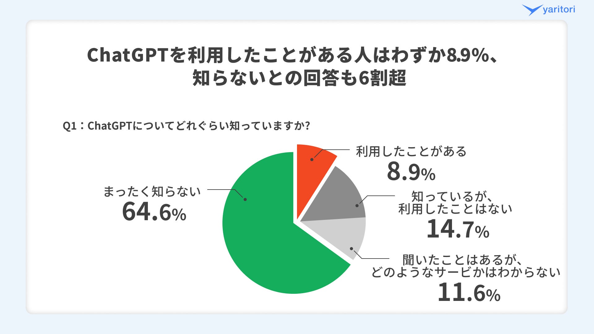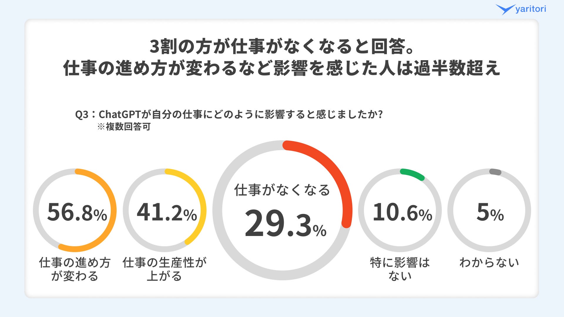 ChatGPT調査をyaritoriが公開|利用経験があるビジネスパーソンはわずか『8.9%』、「仕事がなくなる」と考える人は約3割