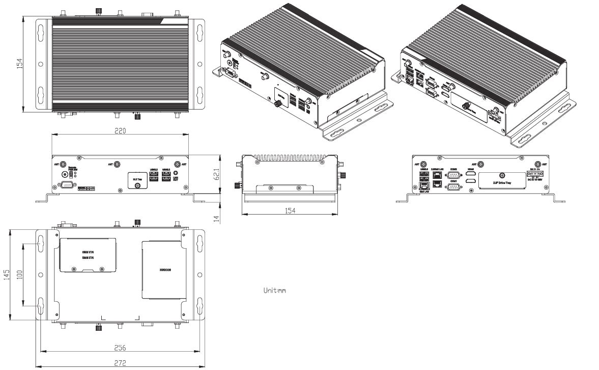 Intel® Core™ Ultra 7 processor 155H NVMe, 3LAN,6USB,2HDMI IN, DC 9~36V