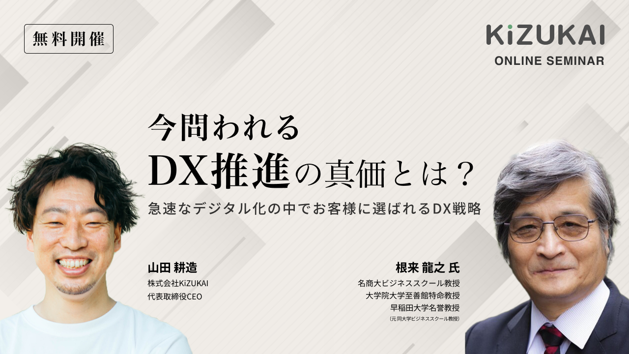 【Webセミナー】KiZUKAI×根来 龍之氏「“今問われるDX推進の真価とは? ” ~急速なデジタル化の中でお客様に選ばれるDX戦略~」