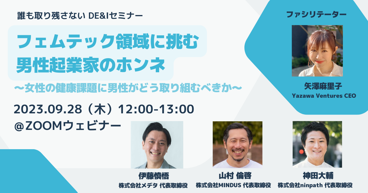 フェムテック領域に挑む3社の男性起業家が女性の健康課題をホンネで語るウェビナーを開催