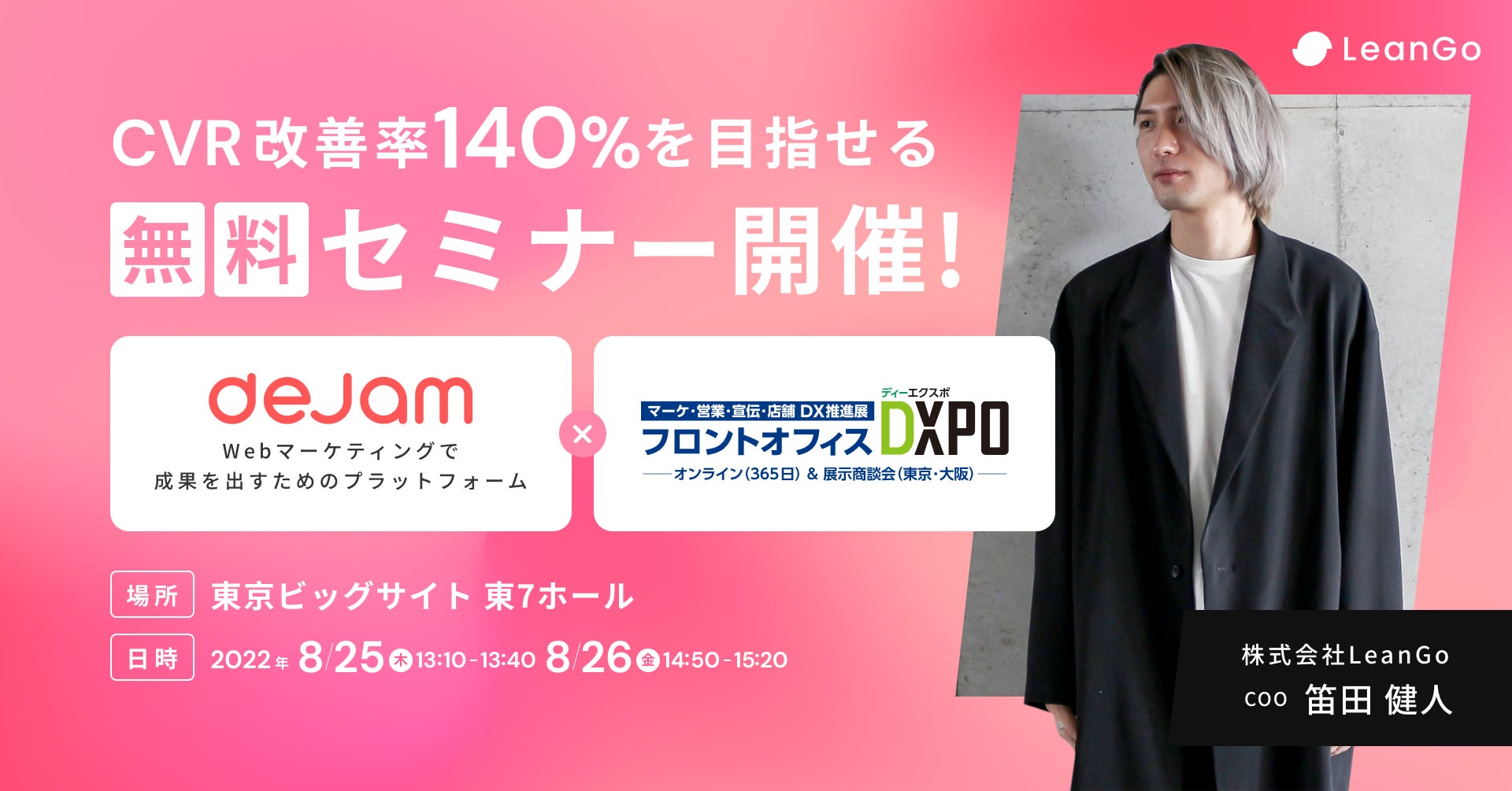 【フロントオフィスDXPO出展概要】dejamを運営するLeanGoがCVR改善率140%を目指せる無料セミナーを開催!