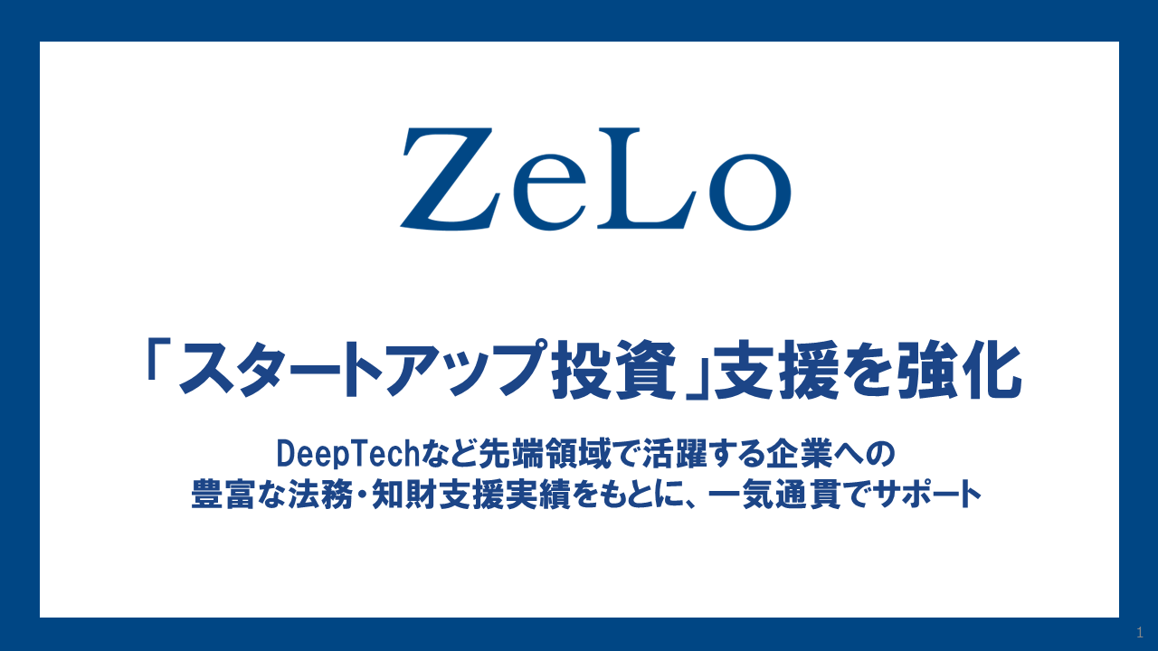 法律事務所ZeLo、「スタートアップ投資」支援を強化。DeepTechなど先端領域で活躍する企業への豊富な法務・知財支援実績をもとに、一気通貫でサポート