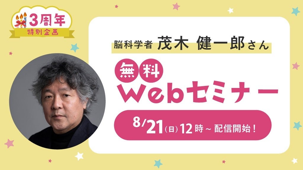 脳科学者・茂木健一郎さんによる保育者向け無料Webセミナーを8月21日(日)12時から配信