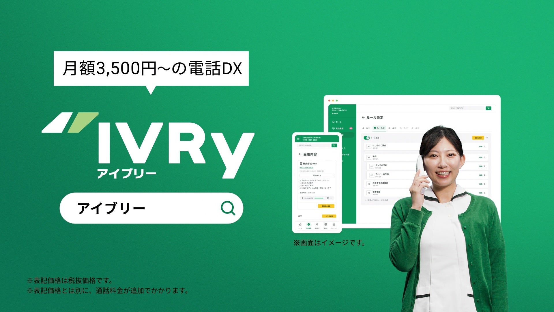 株式会社IVRy(読み:アイブリー)は、月額3,000円から利用できる電話自動応答サービス(IVRシステム)IVRyを開発・提供しています。