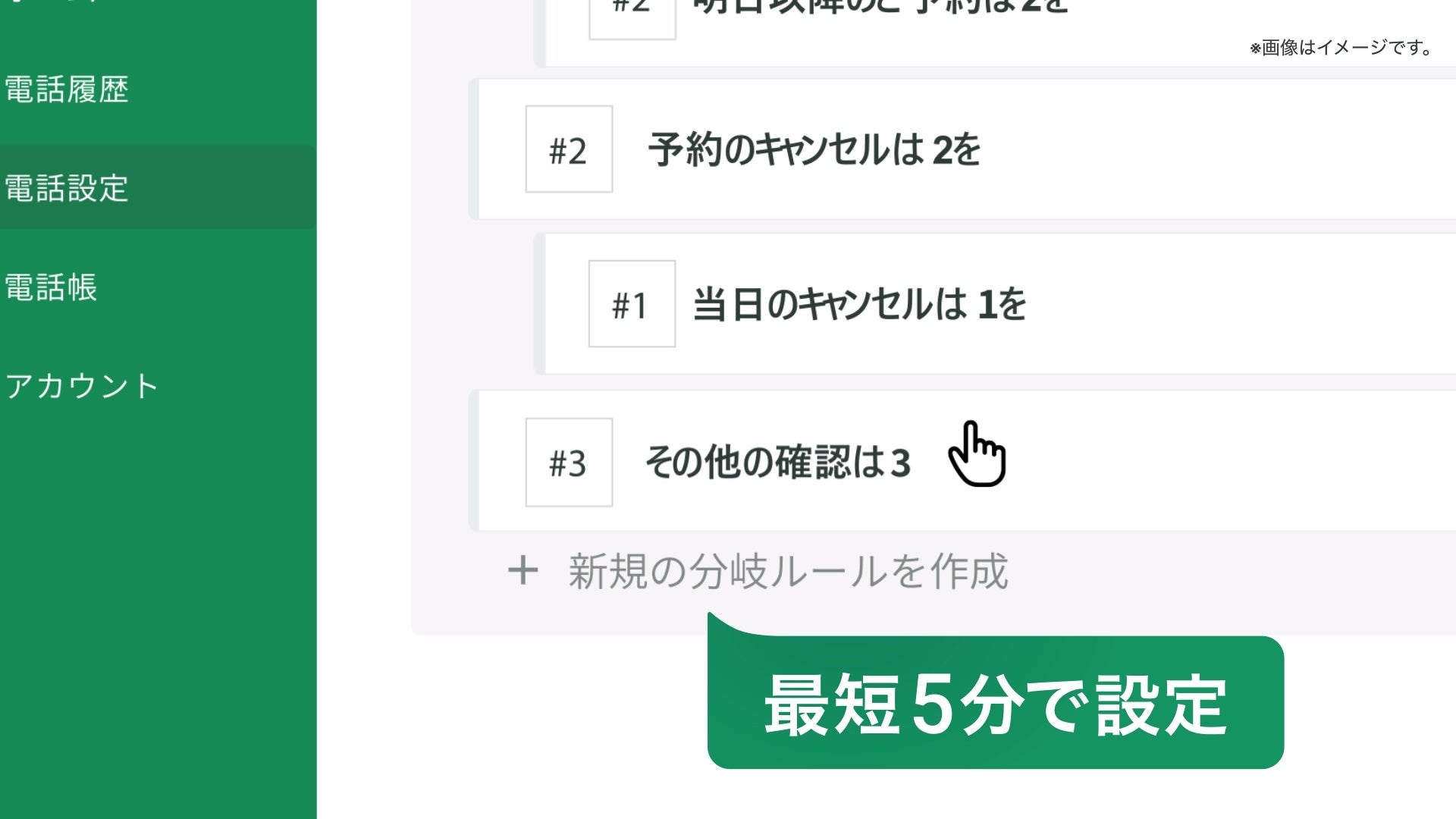 人の対応が必要な内容と、自動化できる内容に振り分けることで、電話対応の負担軽減ができます。読み上げテキストの登録、道案内、予約など様々な使い方をしていただくことができ、ローコストかつ簡単に導入することができます。