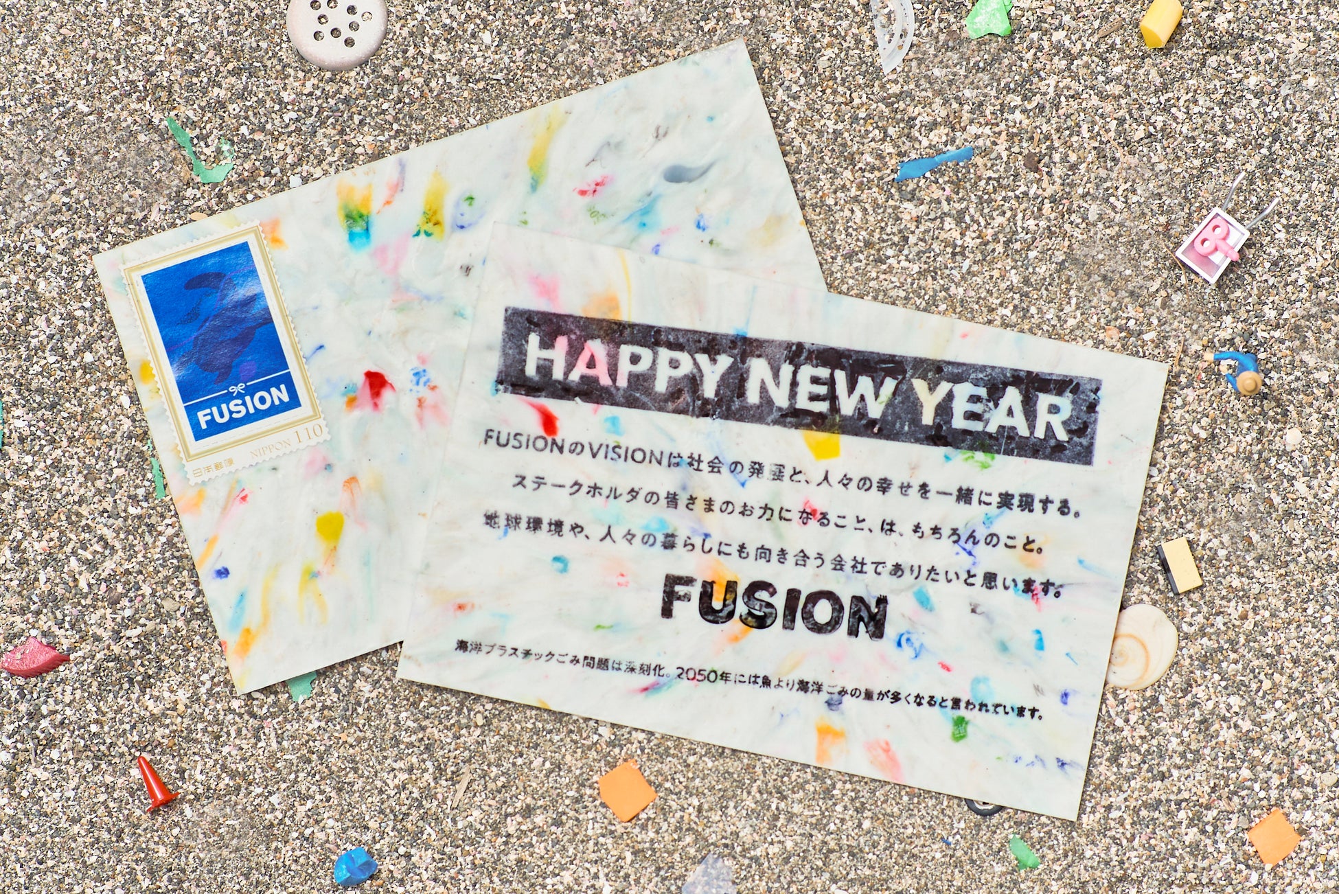 FUSION、海洋プラスチックを使った2025年オリジナル年賀状を作成。環境や社会に対する意識向上を周囲に啓発