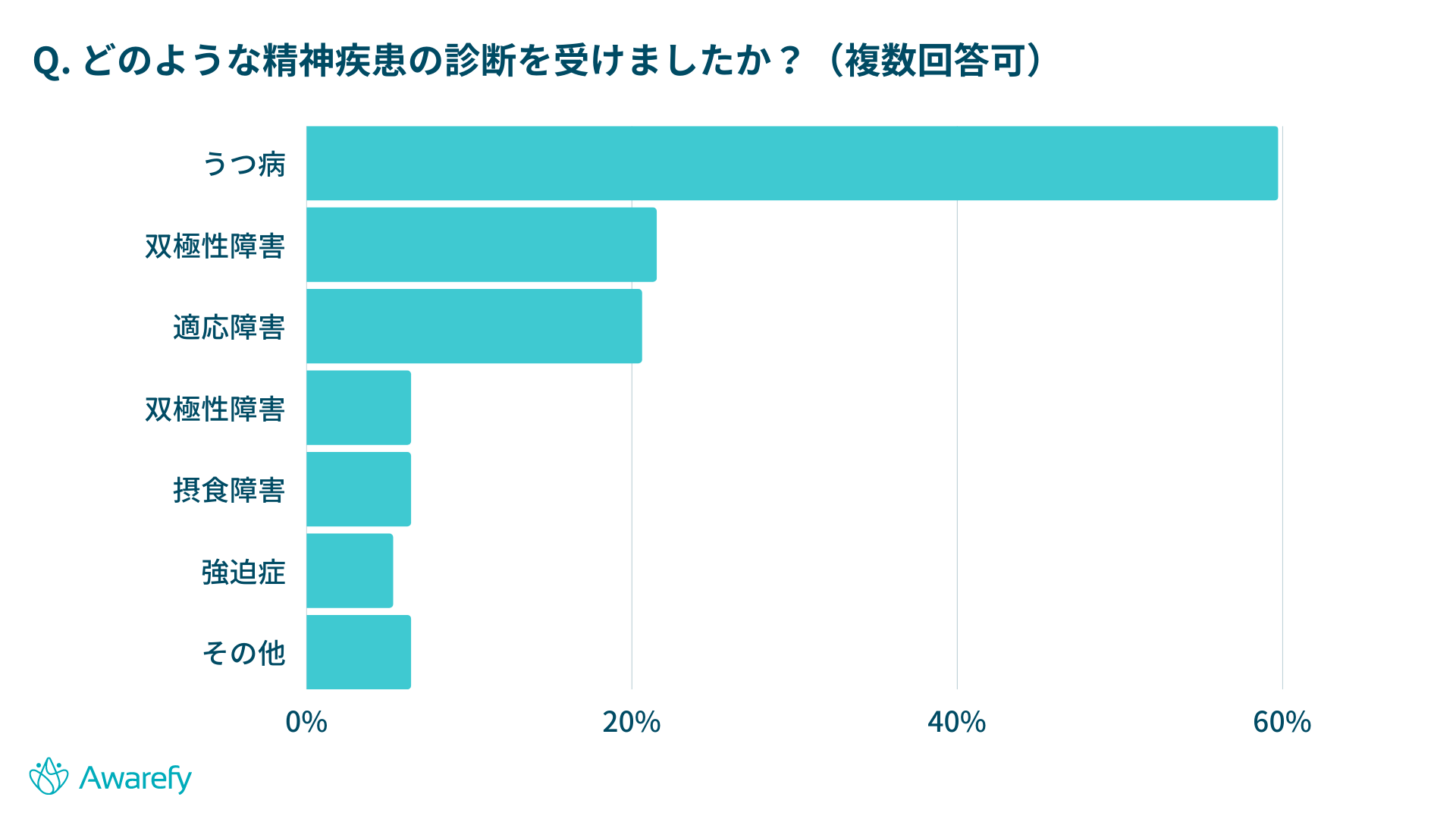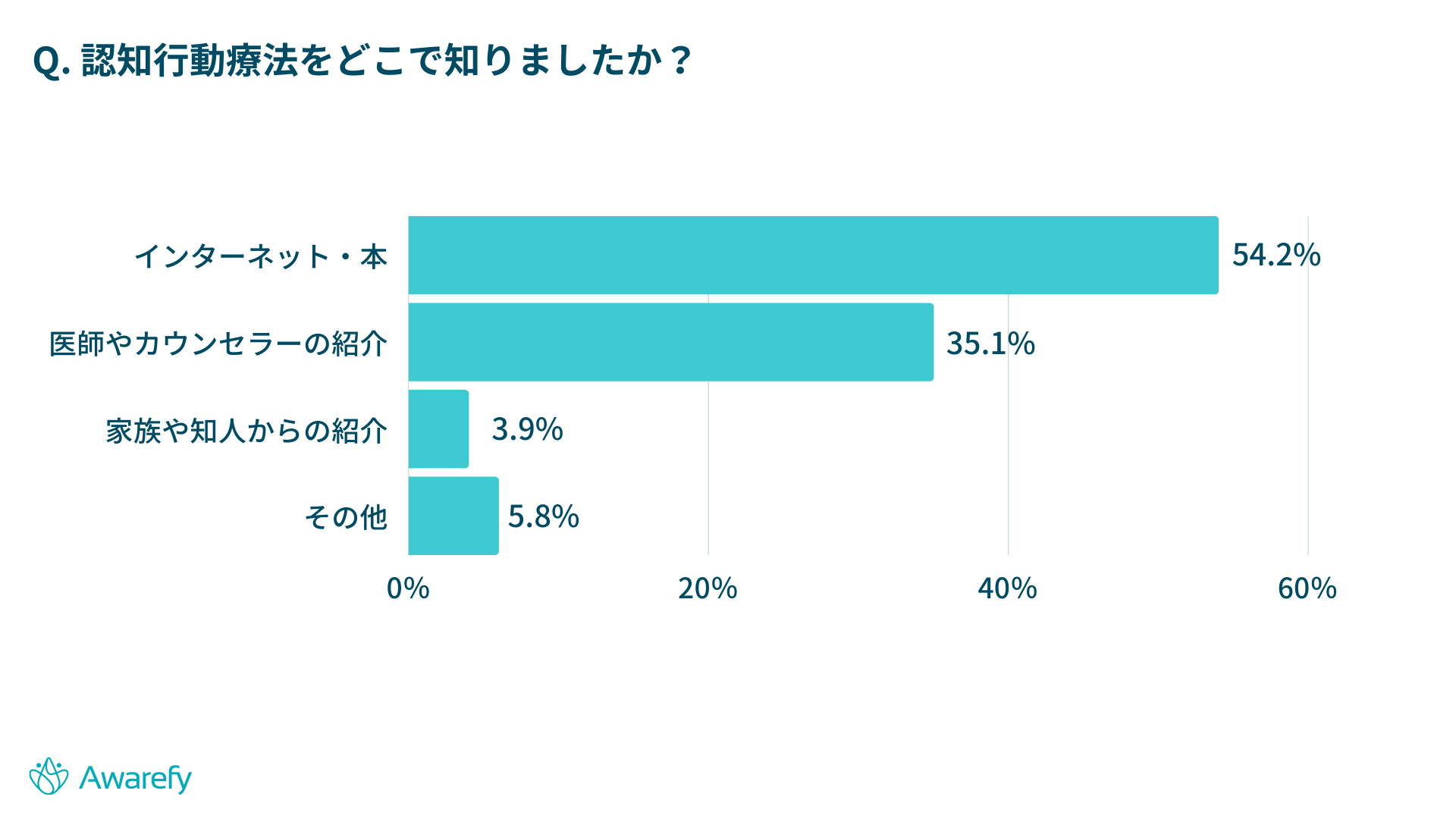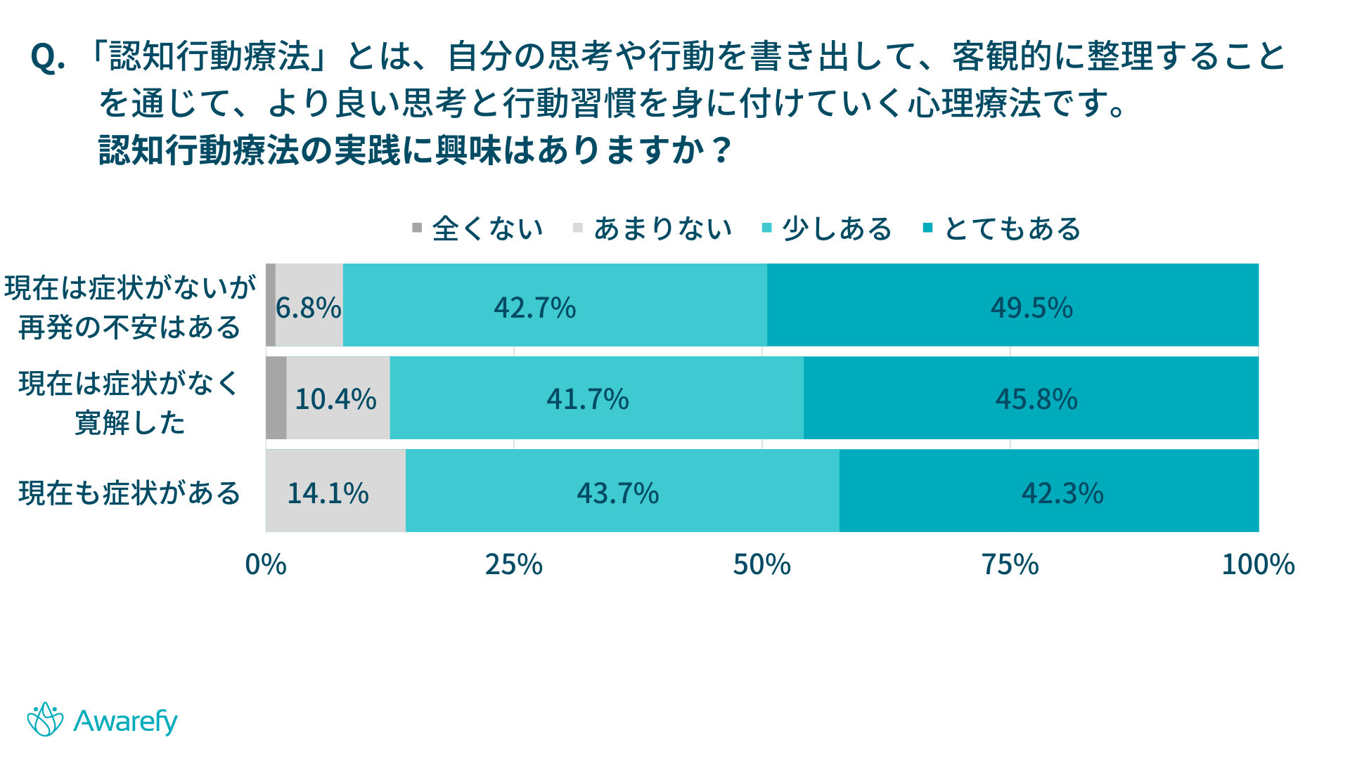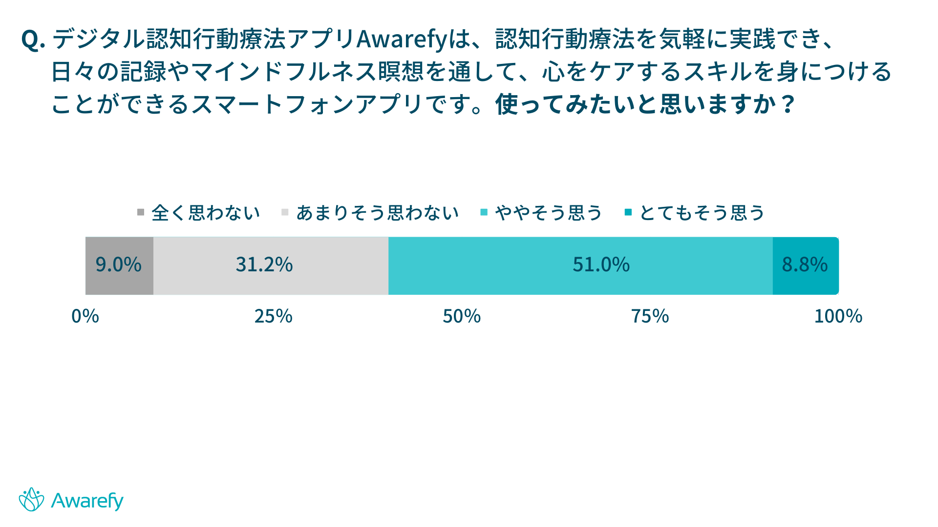 認知行動療法、Awarefyの概要を簡単に説明した上での質問。全体の60%がAwarefyに興味を示した。