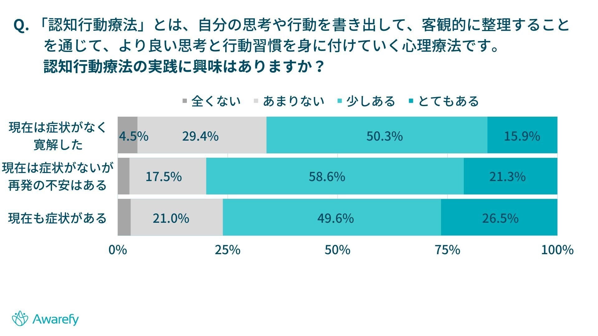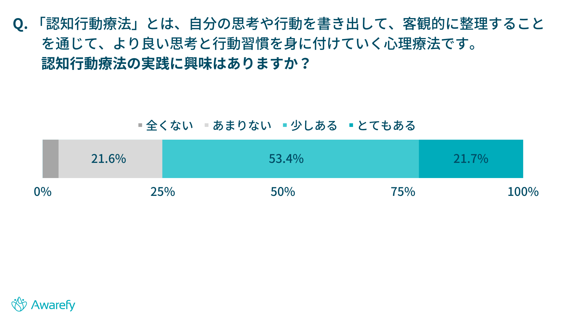 調査結果2:精神疾患経験者の「認知行動療法の実践への興味度」は75%
