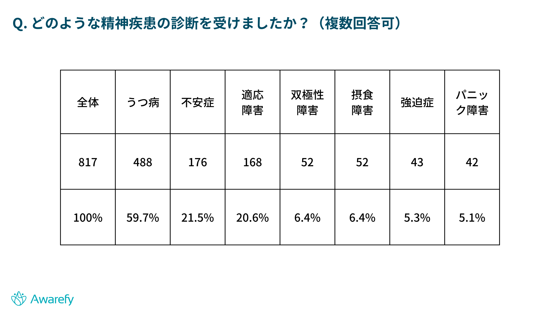 今回、認知行動療法の世間のイメージや浸透度合いといった実態を調査するため、過去に精神疾患を経験したことがある方を対象に、アンケート調査を行いました。