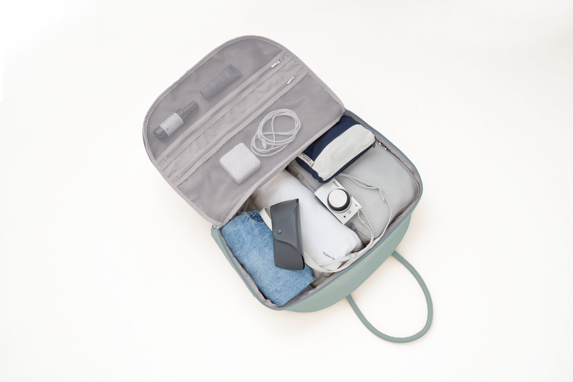 普段のお出かけや旅先のセカンドバッグとしても活躍するショルダー付きミニバッグ。見た目以上の大容量で、500mlのペットボトルやミニサイズの折り畳み傘も収納可能です。