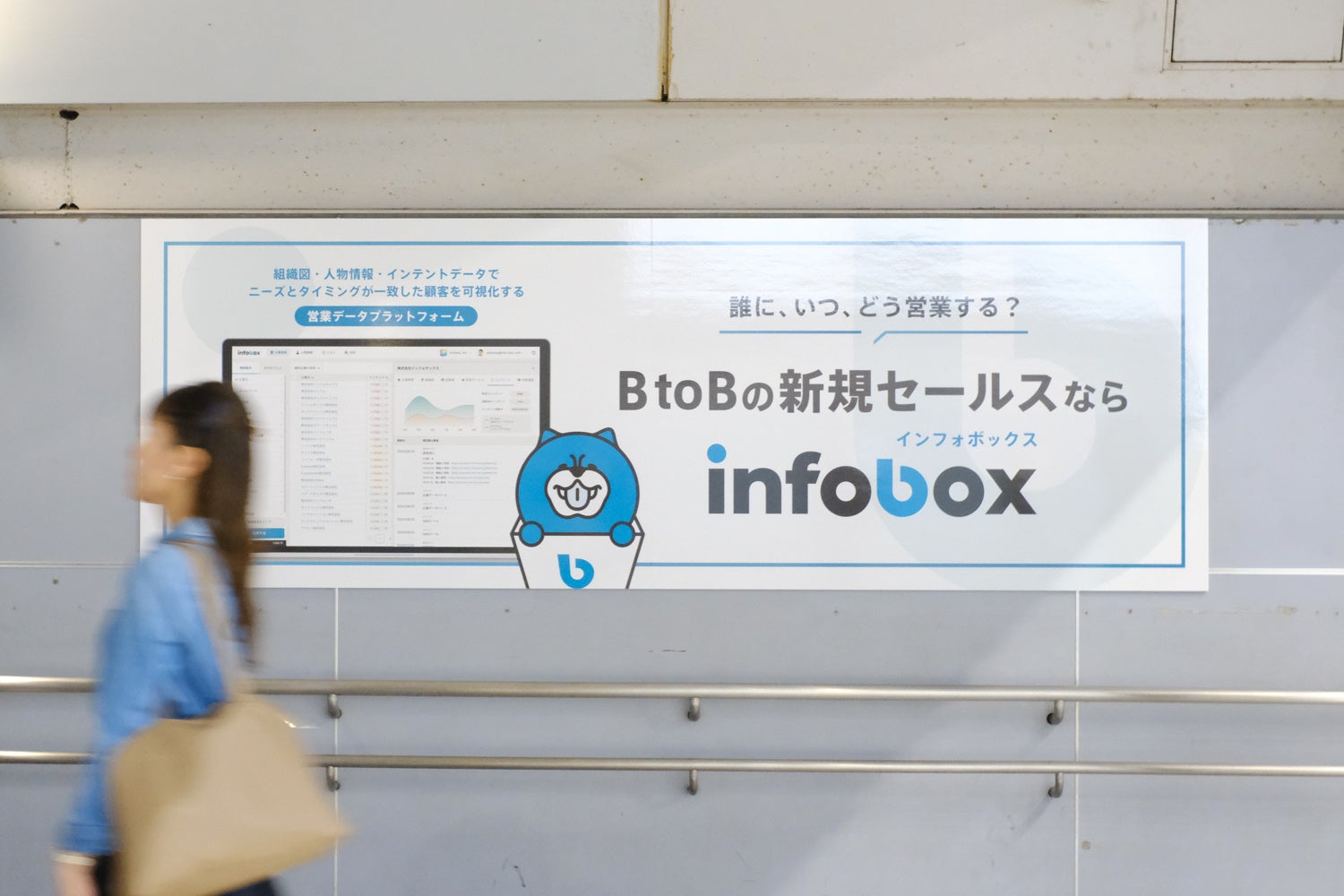 営業データプラットフォームを提供する株式会社インフォボックス(本社:東京都千代田区、代表取締役:平沼海統)は、2024年10月16日から2024年10月31日まで、山手線をはじめとしたJR東日本主要駅のホームおよび通路に、「営業データプラットフォーム infobox」の広告を掲出します。