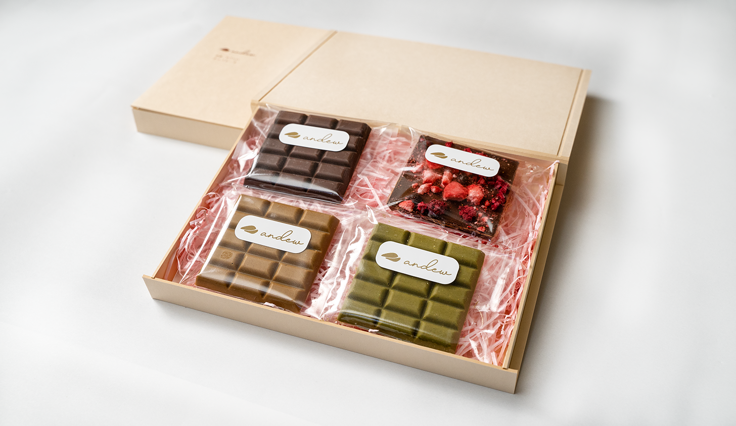 andewの人気フレーバー3種と新作のベリータブレットが一緒になった魅惑の4枚セット。バレンタイン特別仕様0andewらしいやさしい色合いのBOXもギフトにはぴったりです。何度も食べたくなる定番タブレットたちと新作のベリーを一緒に楽しみたい方はこちらをおすすめいたします。