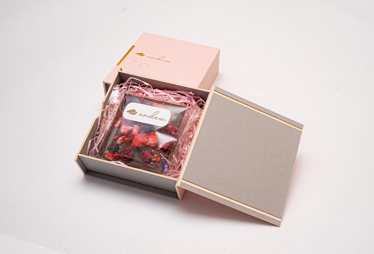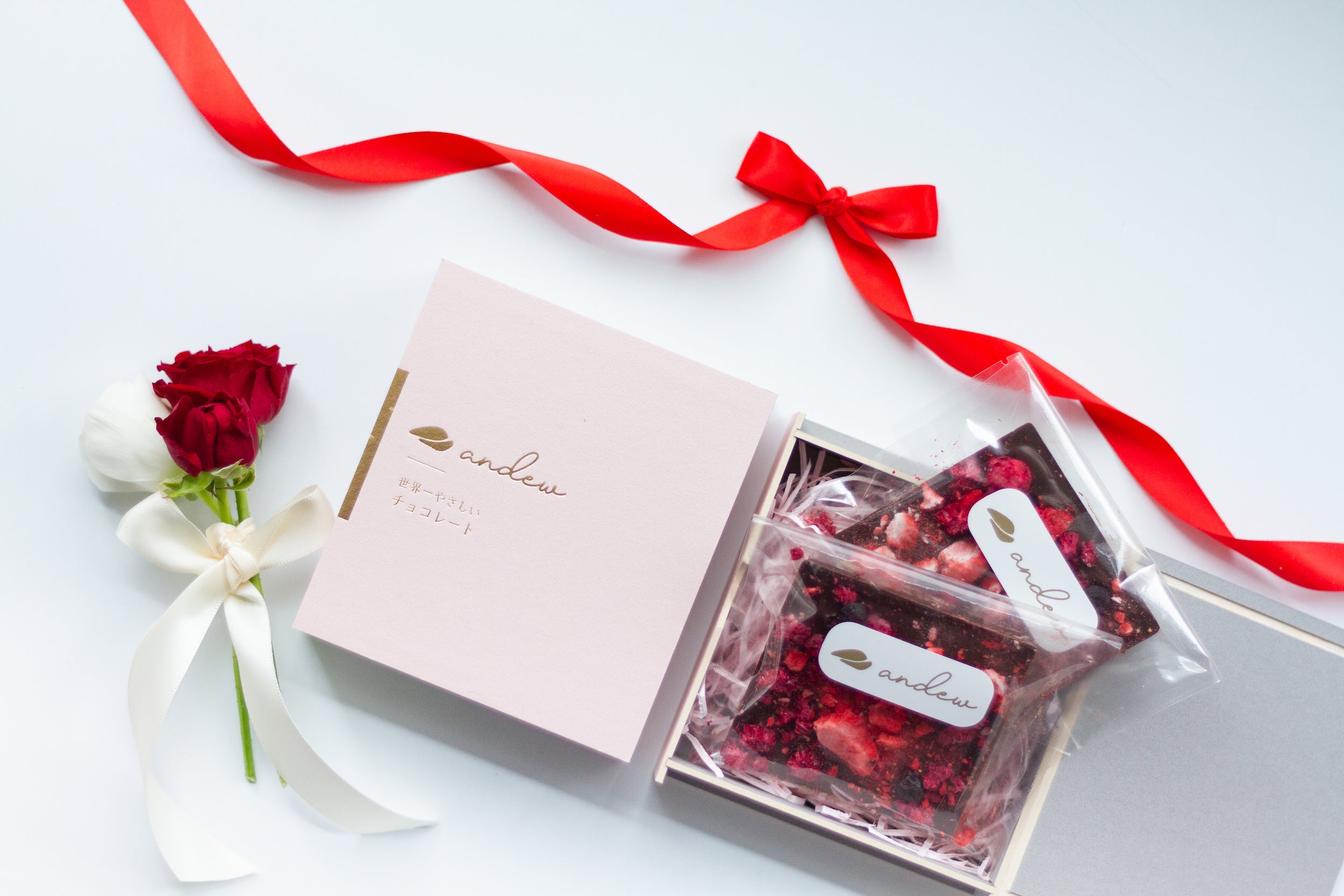 ベリータブレットが2枚セットになったお手軽な新商品。普段から多くのお客さまからご支持いただくandewのGiftBoxと一緒にお届けしているので、贈り物にもうってつけです。新作のベリータブレットとバレンタインを迎えたい方にぜひお試しいただきたい一品です。