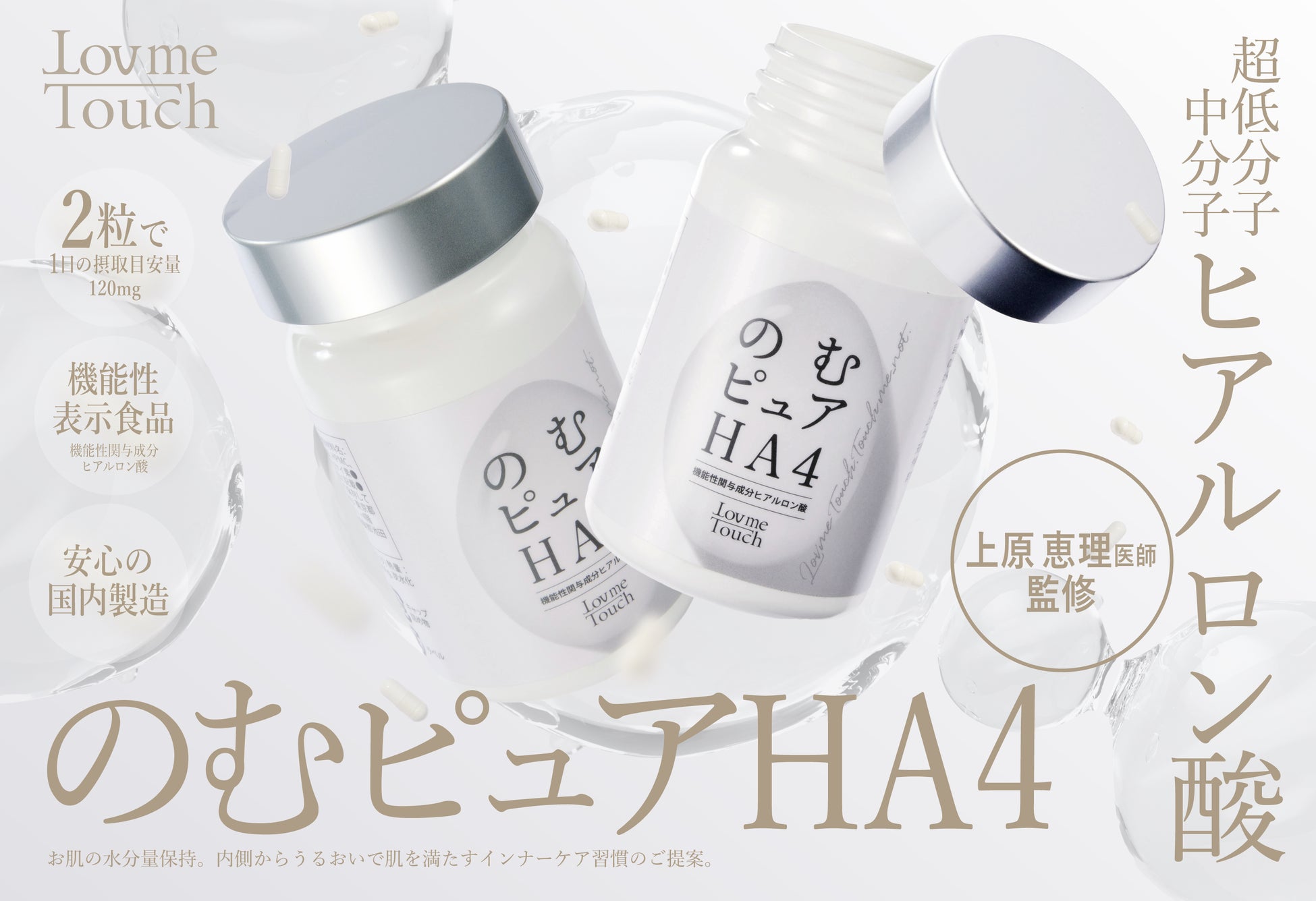株式会社NIKU(東京都新宿区、代表取締役:西須克己)は、Lov me Touch(ラブミータッチ)より、ブランド初となる機能性表示食品「のむピュアHA4」を2024年10月4日より発売します。ヒアルロン酸の持つ優れた保水力で、肌の乾燥を内側からケアする新しいインナーケア習慣をご提案します。