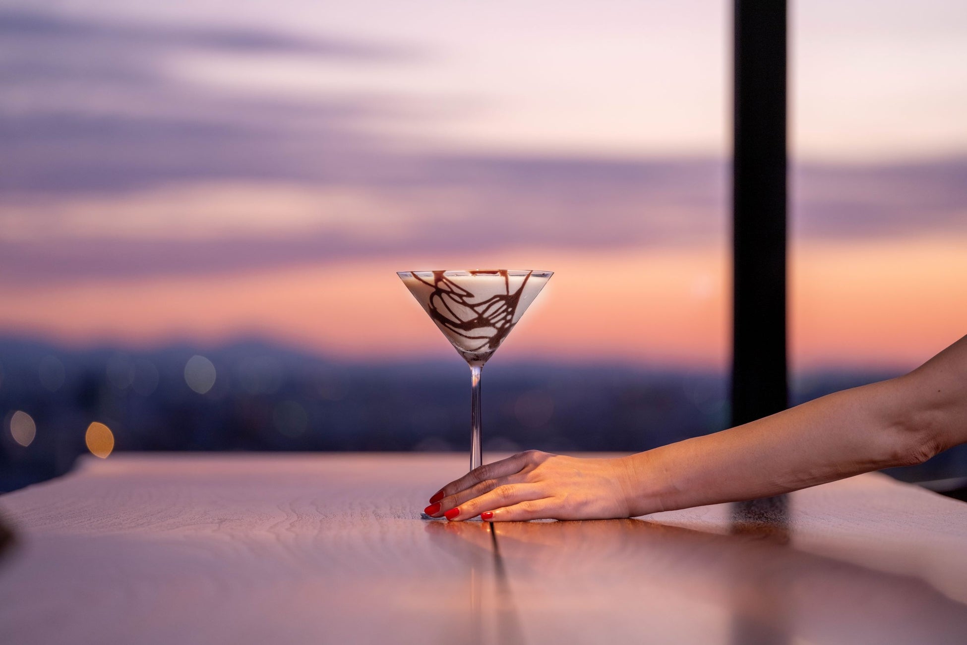 ホテル最上階のRoofTerrace Barでは、Valentine’s Day Cocktailとして、スモーキーアレクサンダーをご用意いたします。食後のデザートカクテルとして定番のアレキサンダーをツイストした大人のカクテル。ほのかに醸し出されたISLAYモルトがアクセントになったカクテルは、ジャクソンポロックのアクションペインティングを彷彿するデコレーションが印象的なアーティスティックな一品。金沢の街を一望できる開放感に満ちた店内で、この時期だけのカクテルとともに、特別なひとときをゆったりとお過ごしください。