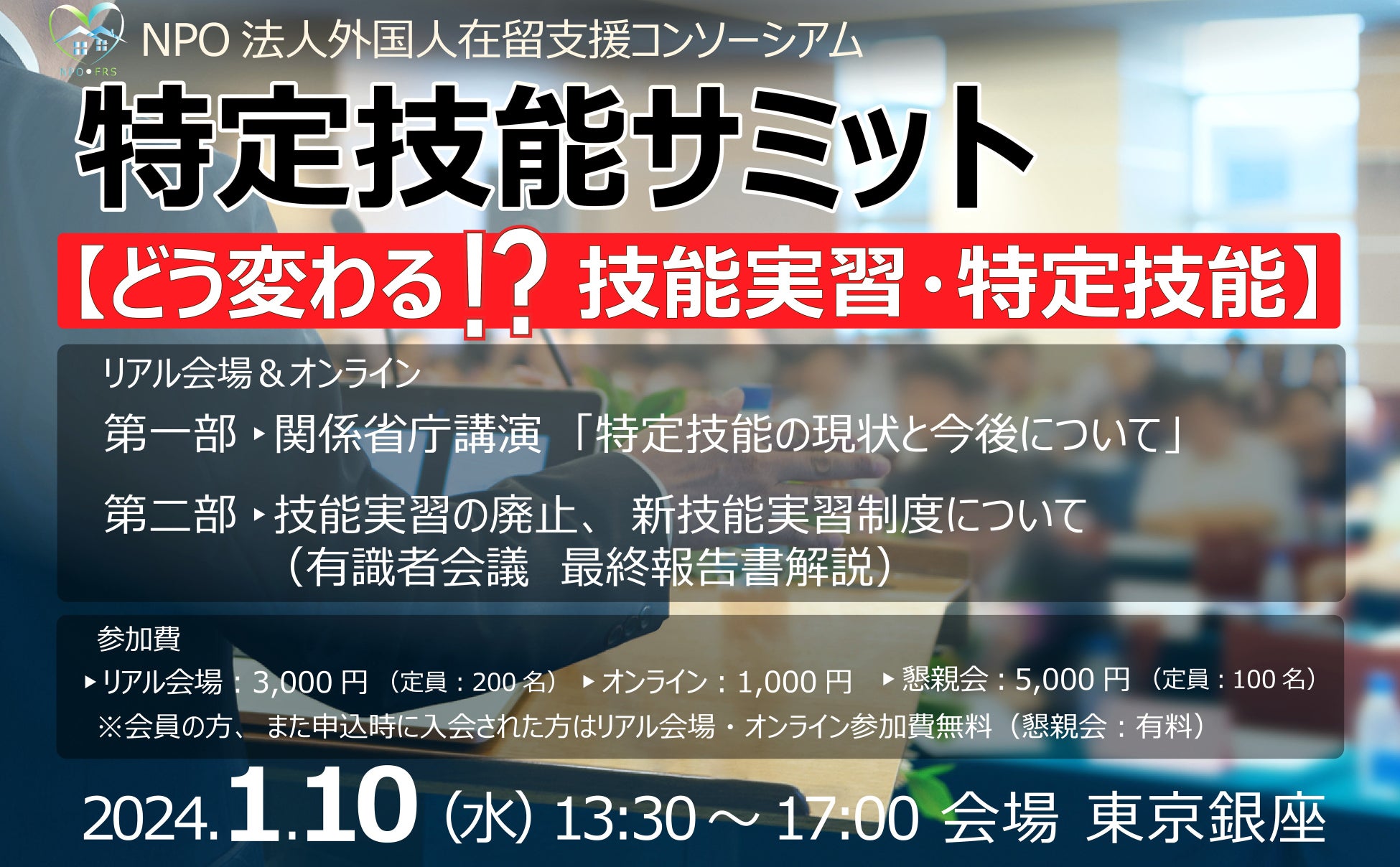 そういった背景もあり、「NPO法人 外国人在留支援コンソーシアム」では、2024年1月10日(水)「第2回 特定技能サミット」を開催いたします。